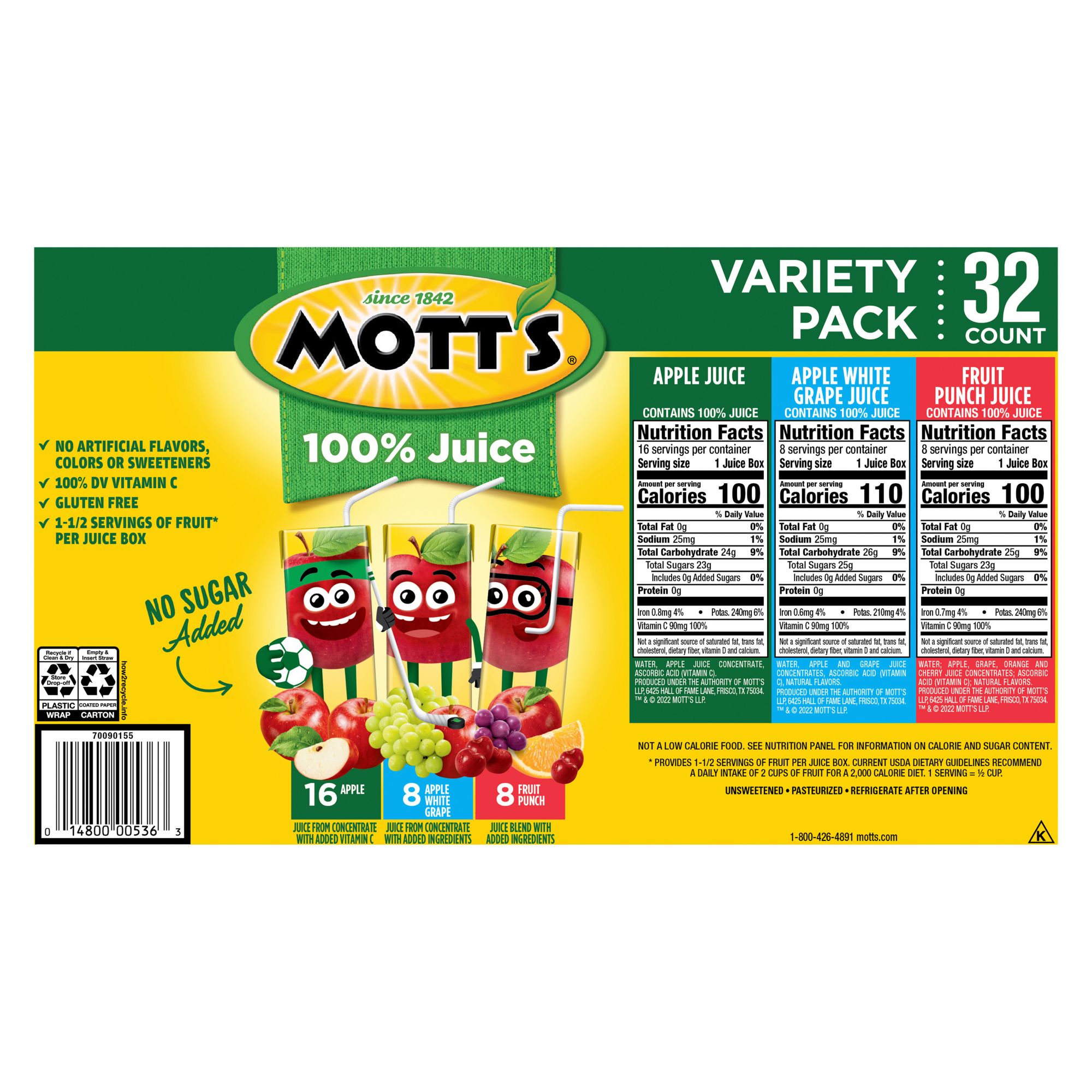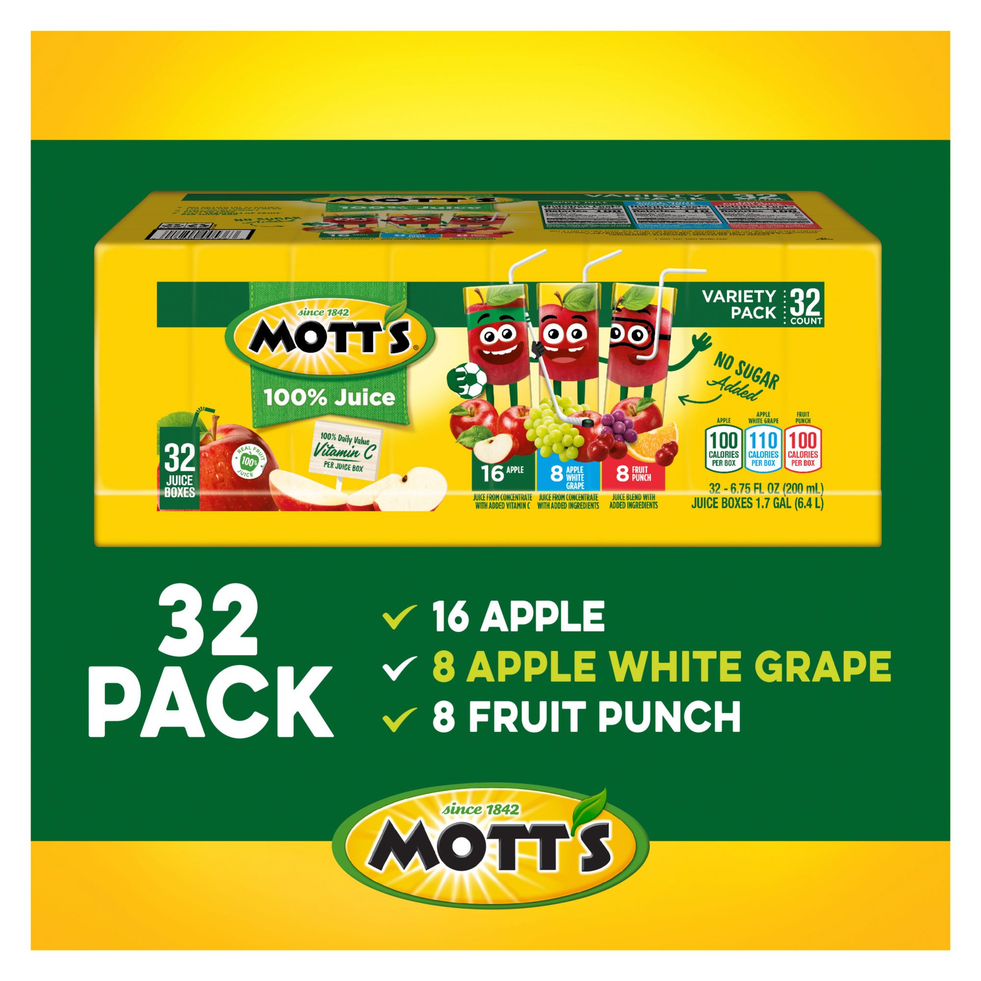 Includes variety pack of juice boxes, 32 pk./6.75 oz.