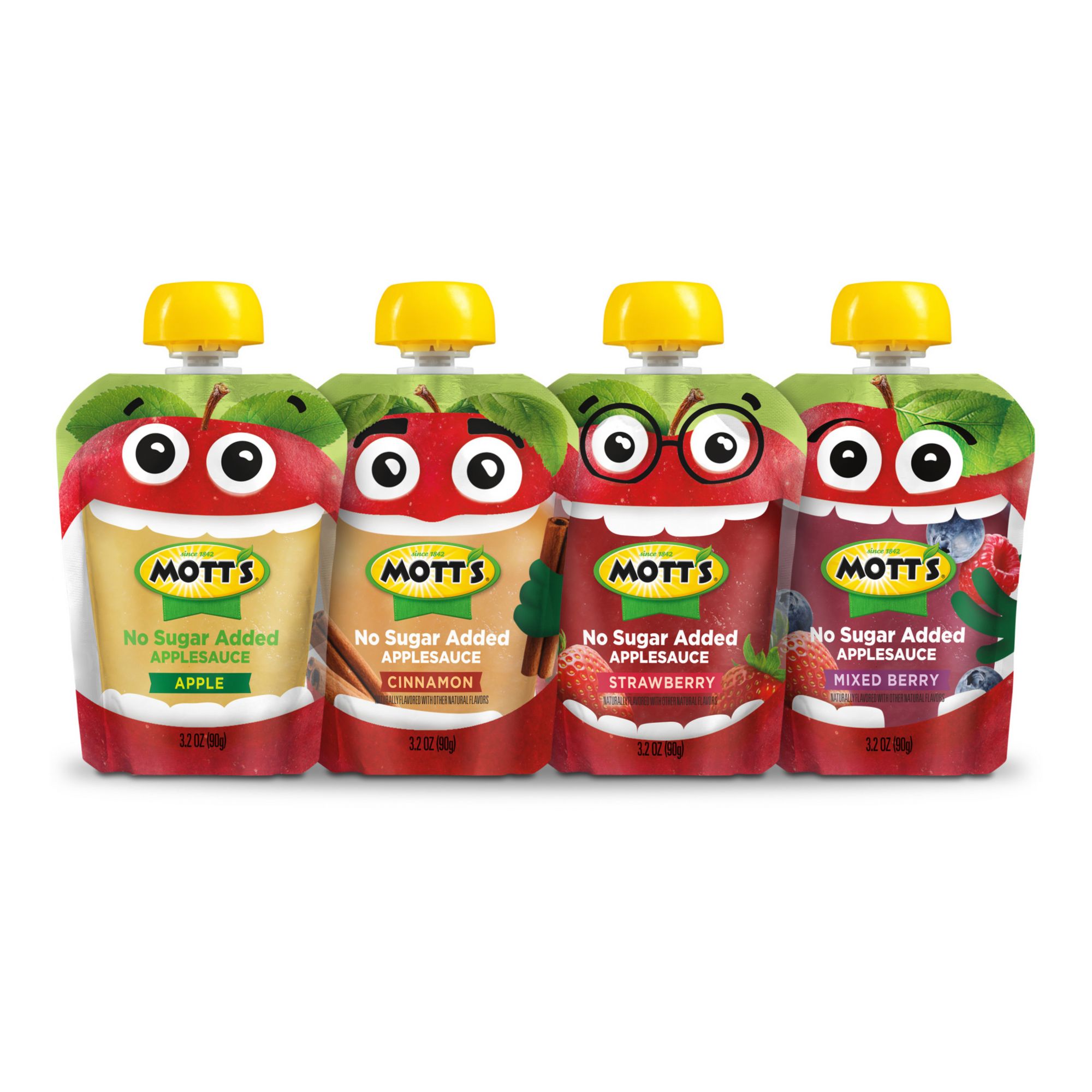 Real fruit: Mott's No Sugar Added Applesauce Variety Pack pouches are made with 100% real fruit with no sugar added.