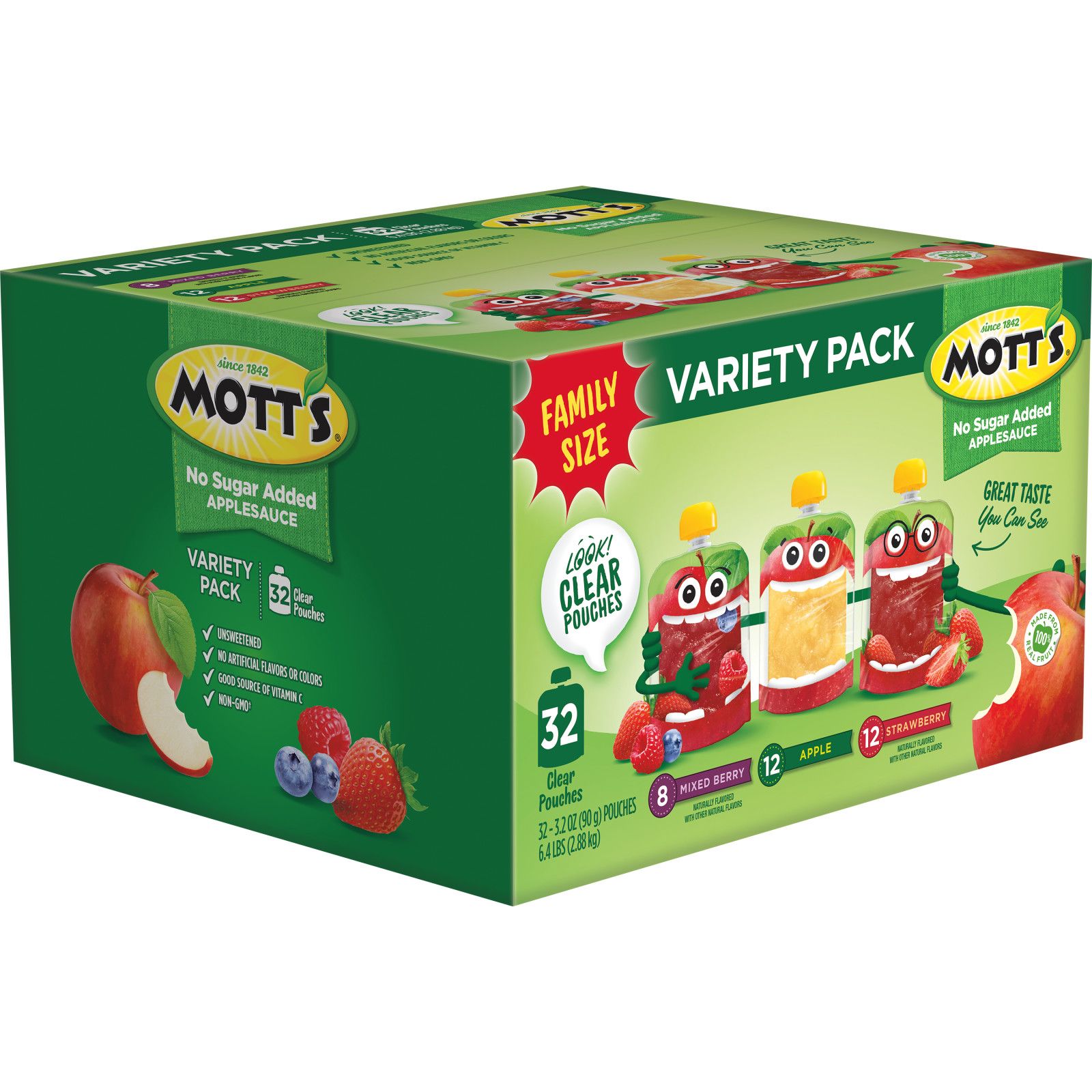 Mott's No Sugar Added Applesauce Variety Pack with Clear Pouches, 32 pk./3.2 oz.