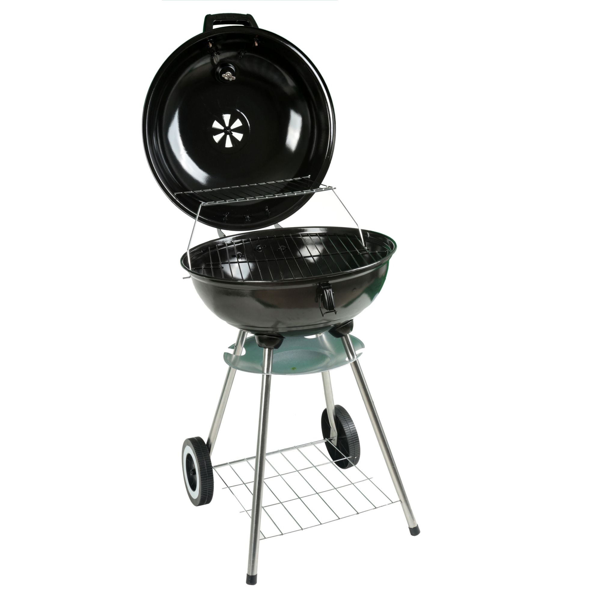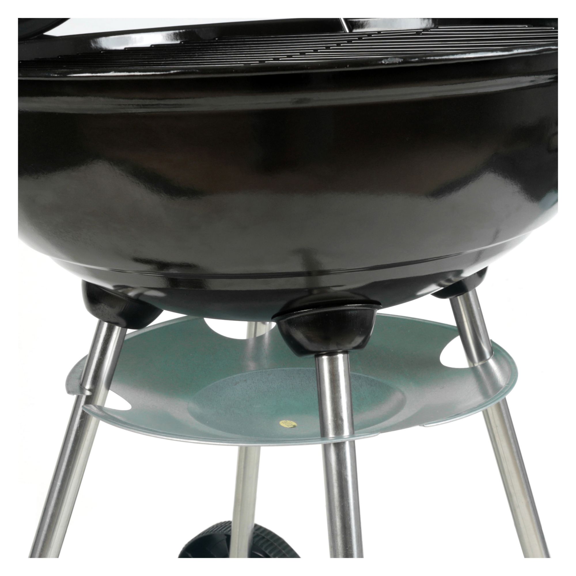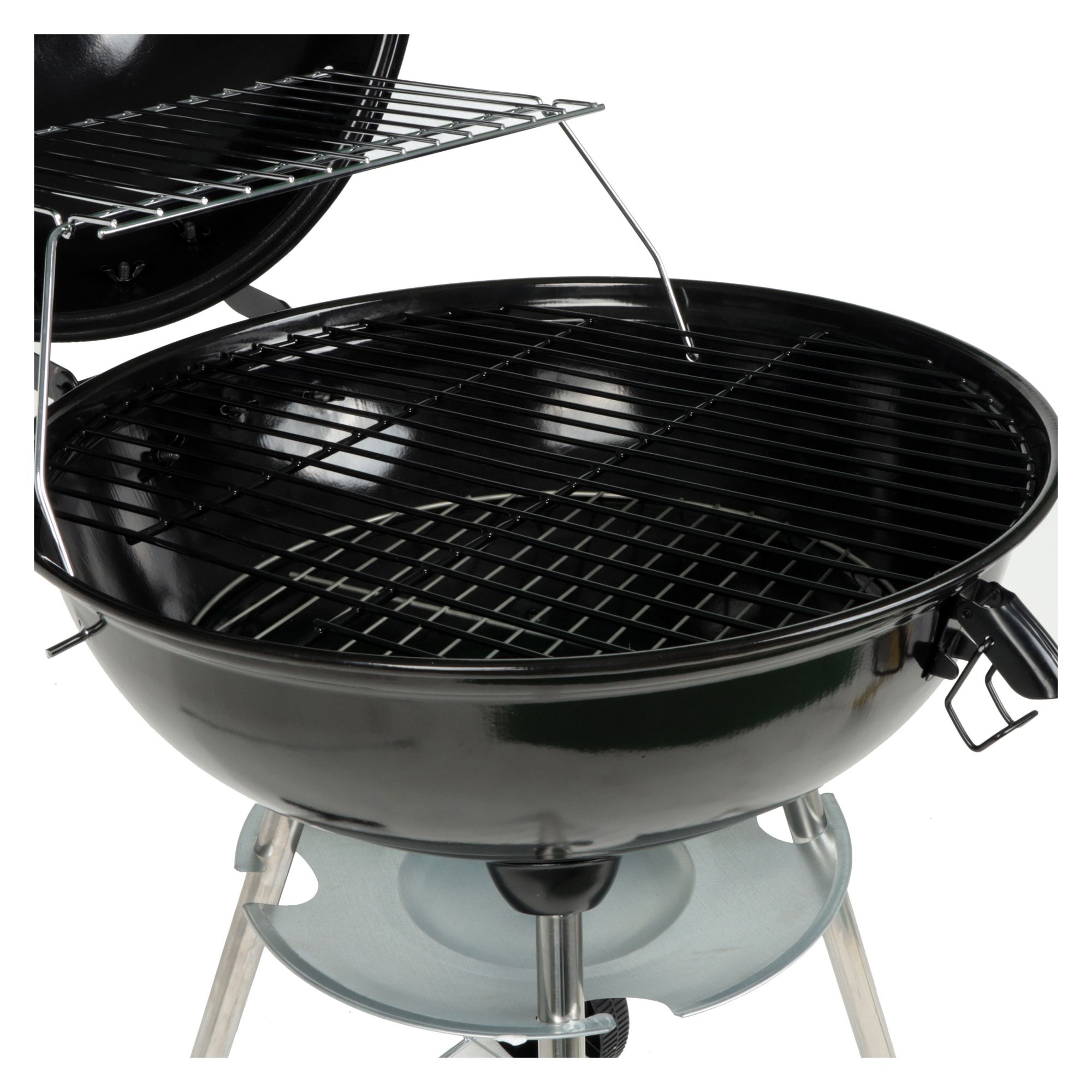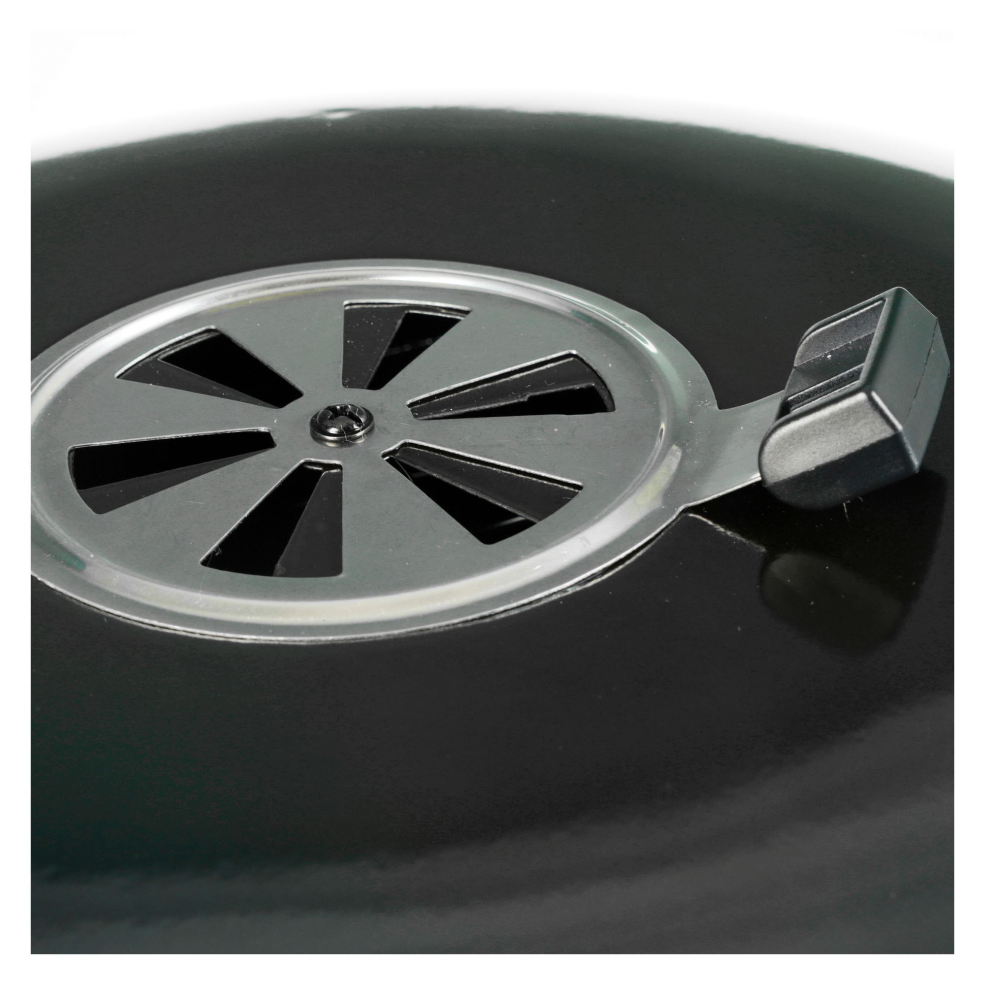 This 17" kettle charcoal grill offers the perfect solution for all your on-the-go grilling needs. This compact little grill is lightweight and easy to transport but still offers over 303 square inches of grilling space - enough to grill for the entire family or the carload at the big game. The firebox is enamel coated, giving it strength and durability to survive the harshest grilling conditions. The air venting system helps control the heat so you can conveniently regulate the airflow for charcoal management and control the cooking temperature when you need to slow cook or sear. The easy-access ashtray allows simple clean-up. You’ll always be grill-ready for your next home cookout tailgating, camping, or beach adventure.