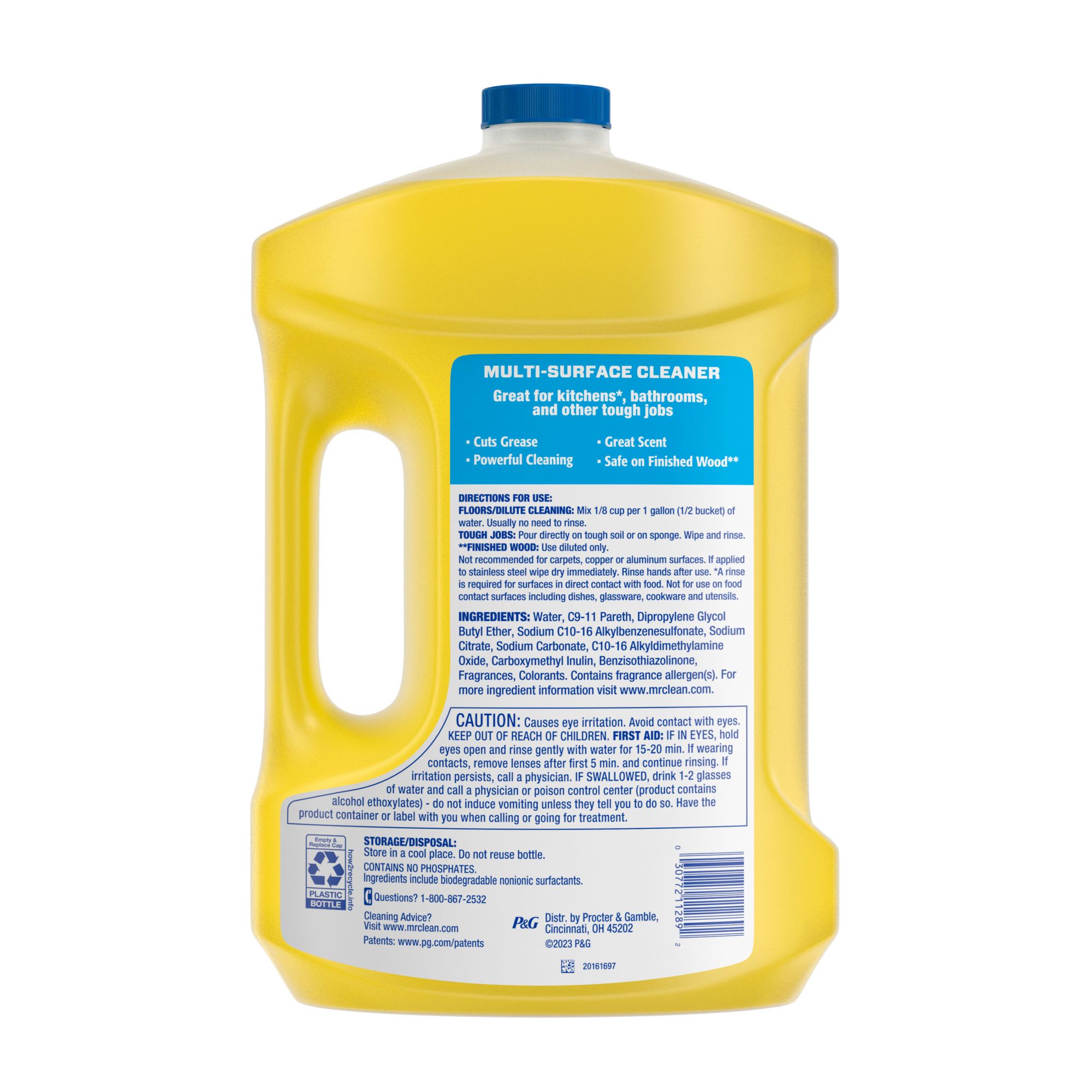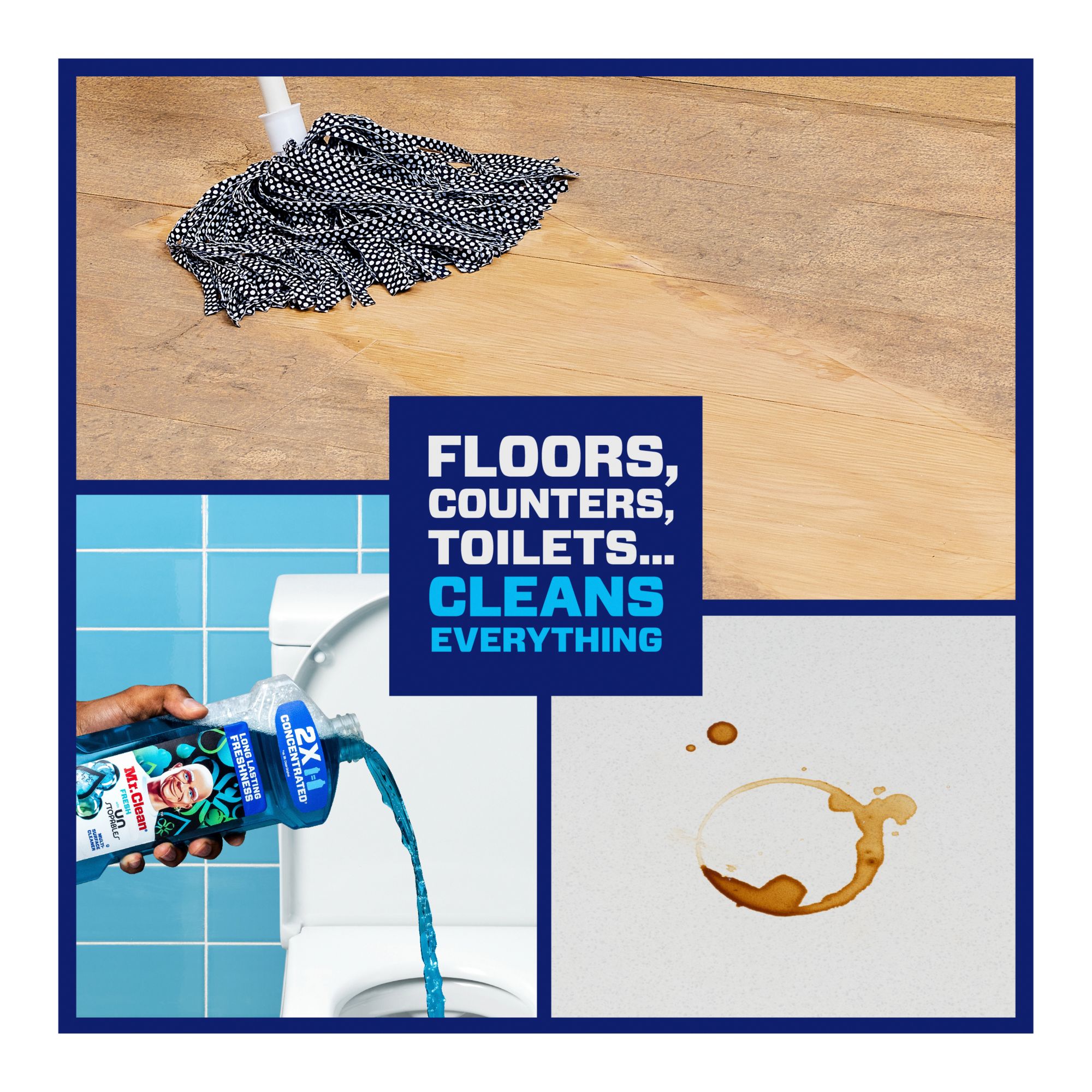 Mr. Clean's 2X Concentrated* Liquid formula muscles through 100% of dirt and grease for powerful, multi surface cleaning. This floor cleaner for mopping is great for cleaning linoleum, tile & hardwood floors**. Use Mr. Clean all purpose cleaner all around the house to clean toilets, sinks, and bathtubs. This multi surface cleaner even works outside on garbage cans, doors, and more. It makes cleaning your house that much easier and leaves the long lasting freshness of lemon scent behind. Add Mr. Clean to your arsenal of cleaning supplies today!*vs. Mr. Clean Original**use diluted only