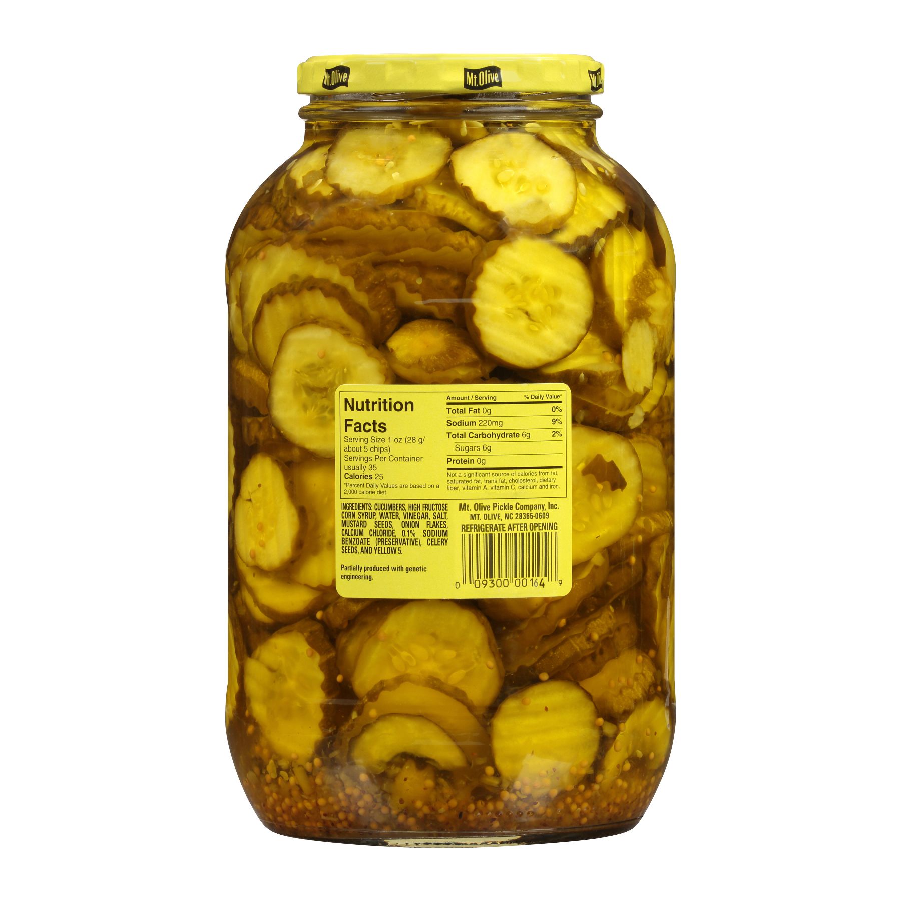 Ingredients: Cucumbers, High Fructose Corn Syrup,, Water, Vinegar, Salt, Mustard Seed, Onion Flakes, Calcium Chloride, Sodium Benzoate, Celery Seeds, And Yellow #5.