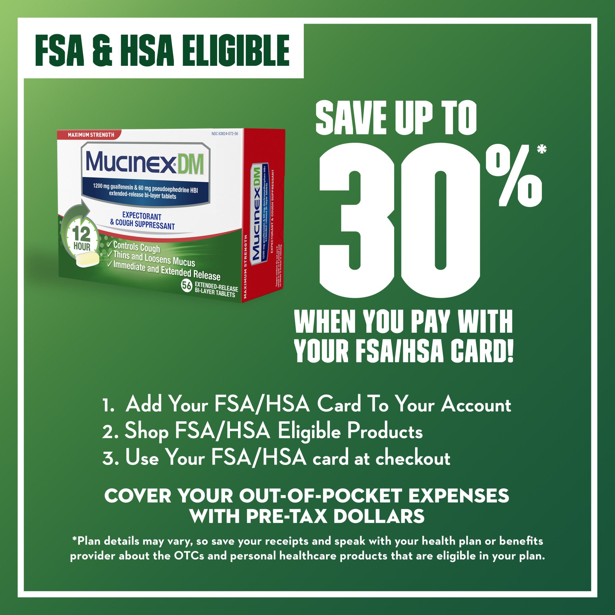 Mucinex DM Cough & Chest Congestion Medicine: Clinically proven to last up to 12 hours to control cough and provide relief for your chest congestion Powerful Symptom Relief: Mucinex DM 12 hour controls cough, relieves chest congestion and thins & loosens mucus BI-Layer Tablet: A unique bi-layer tablet, one layer for immediate release and one layer for extended release so the medicine starts to release right away and last for up to 12 hours #1 Trusted Cold & Cough Brand: #1 Cold and cough brand doctors trust for themselves and their families* and #1 pharmacist recommended brand† Continuous Relief: Mucinex DM lasts up to 12 hours so you can say goodbye to retaking medicine every 4 hours Includes Mucinex DM max, 56 ct.
