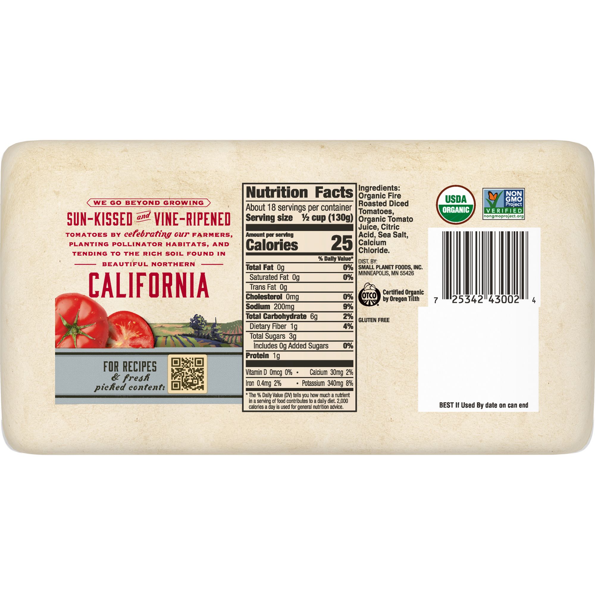 Ingredients: Organic Fire Roasted Tomatoes, Organic Tomato Juice, Citric Acid, Sea Salt, Calcium Chloride.
