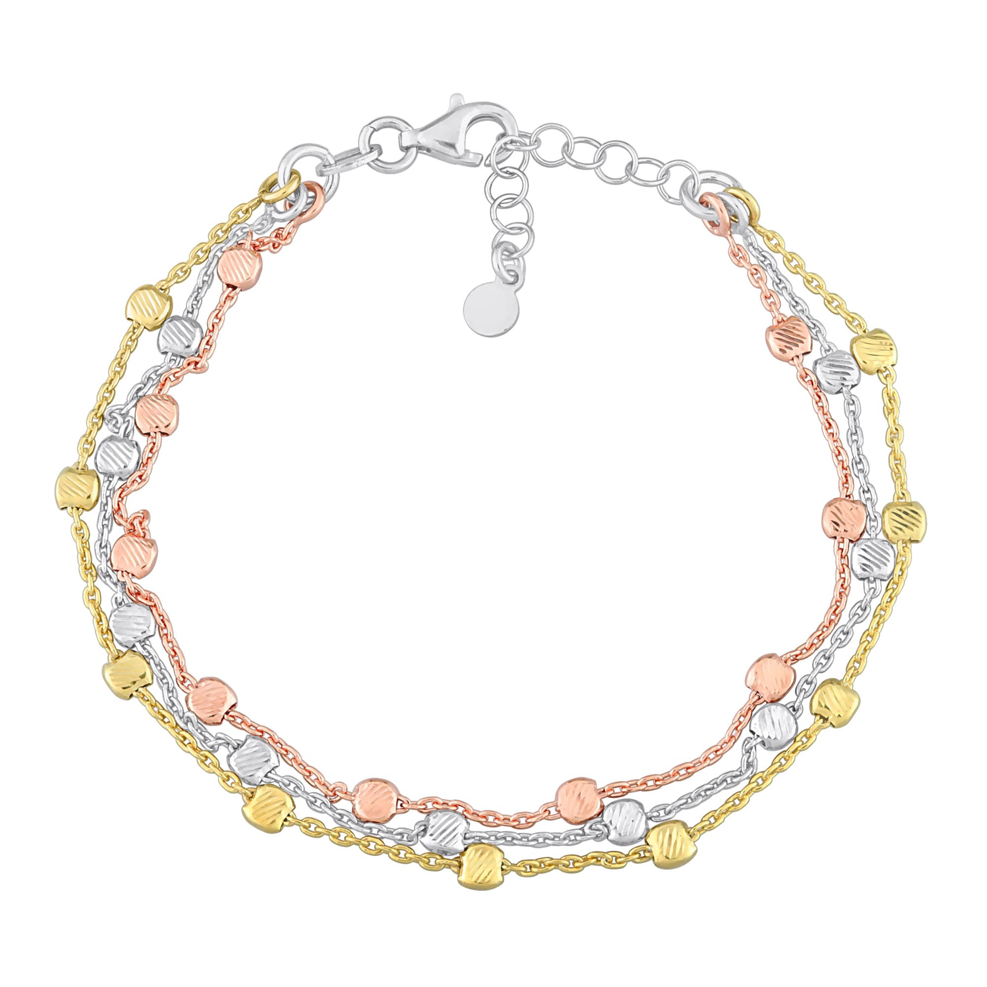 Multi-Strand Chain Bracelet in 3-Tone 18k Gold Plated Silver