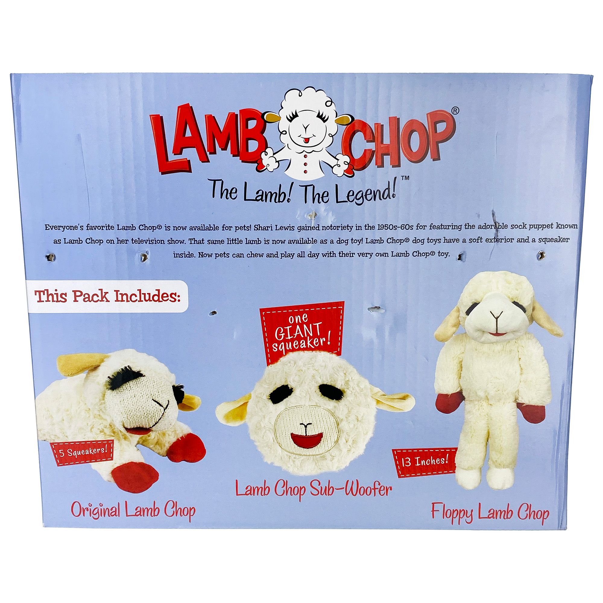 This 3 pk. features the original Lambchop dog toy along with two new custom versions as well. Three times the lamb for three times the fun.