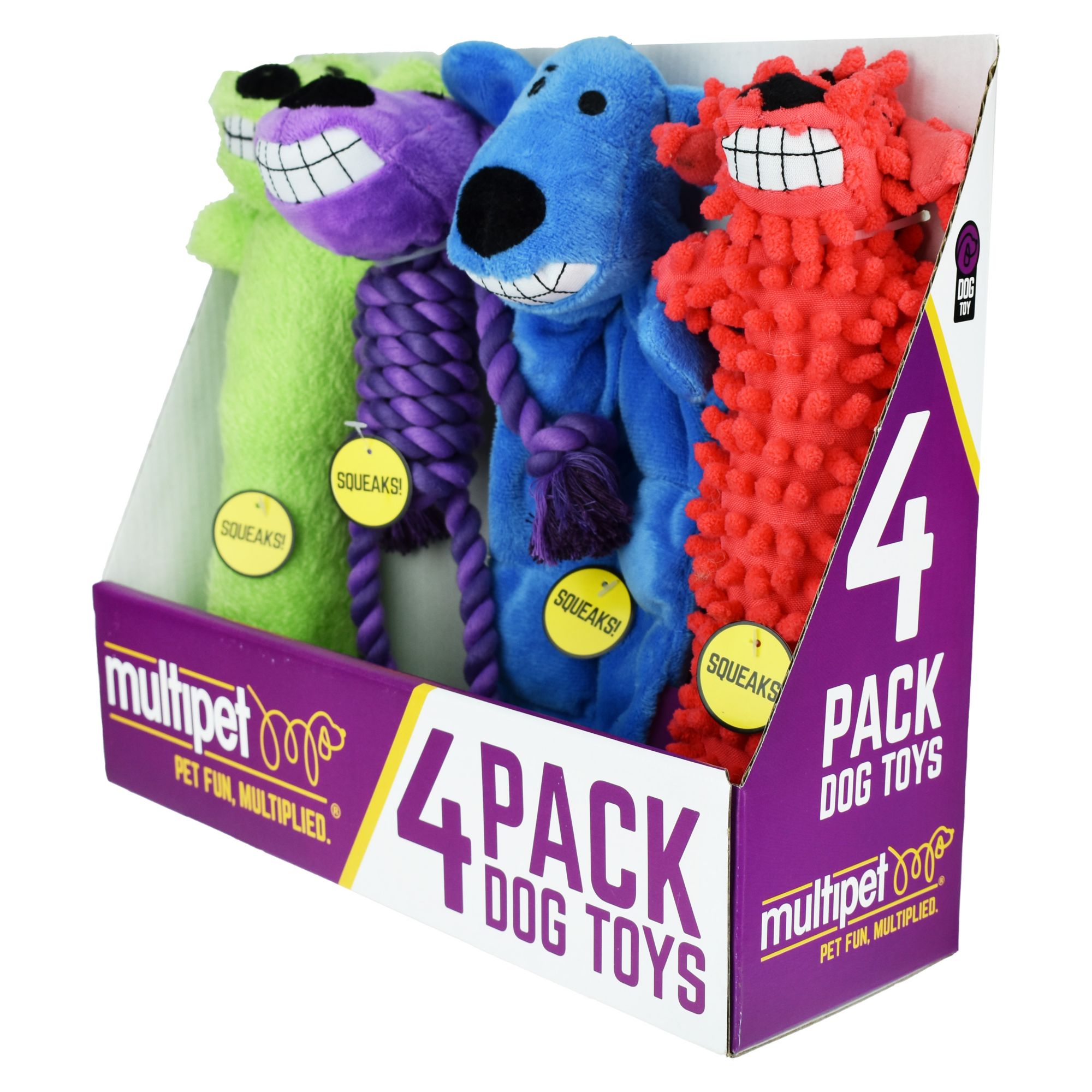 This Loofa Dog four pack is made up of our top Loofa styles! Each one has its own special qualities to make this pack completely unique. It is comprised of the Loofa Dog Original, Loofa Dog Rope Body, Loofa Dog Squeaker Mat and Loofa Dog "Floppy". Between the different materials, squeakers and colors this four pack is sure to keep your furry friend entertained for hours!