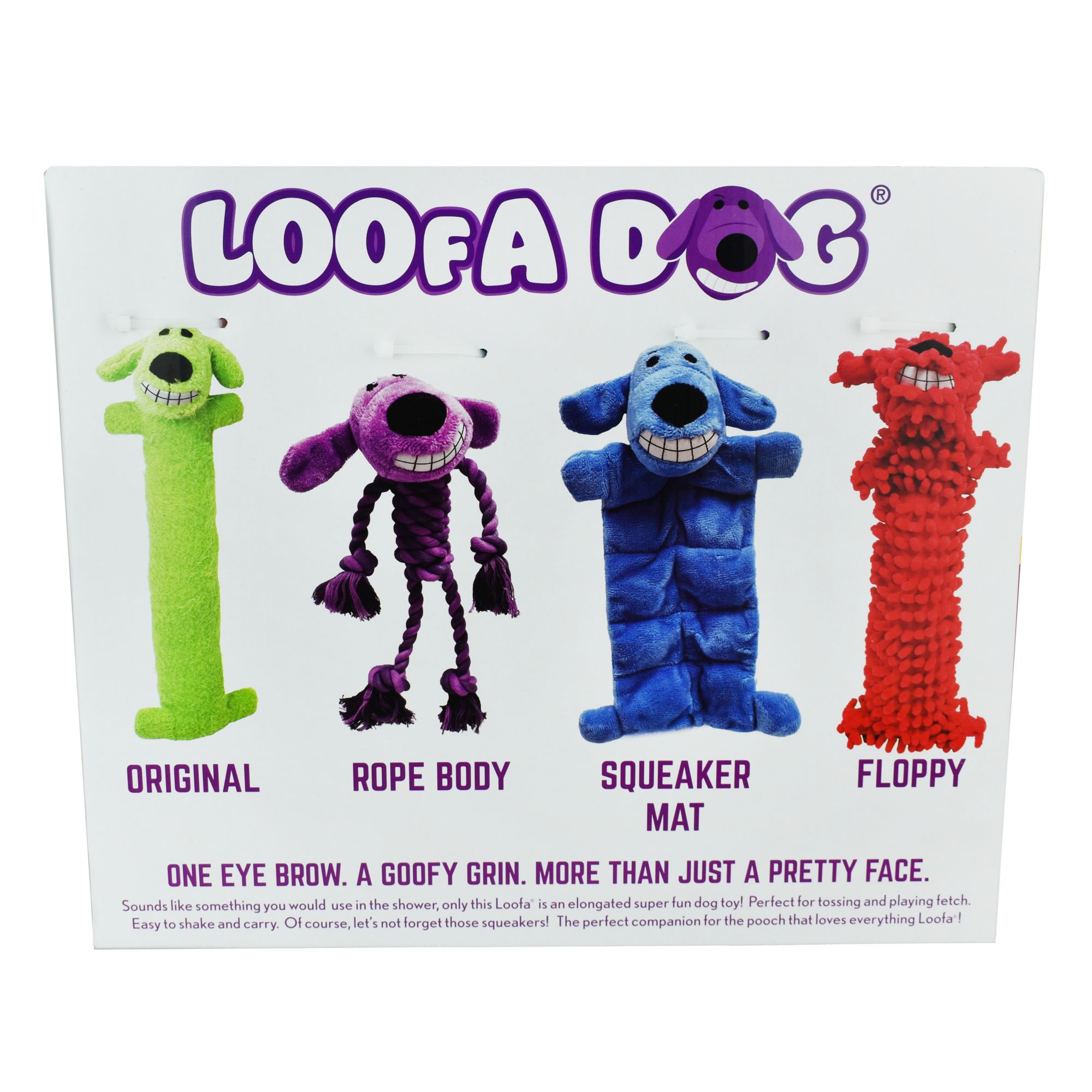 Loofa Dog Original, Loofa Dog Rope Body, Loofa Dog Squeaker Mat, Loofa Dog "Floppy" 4 different styles multiple squeakers and different sounds bright fun colors best selling styles!