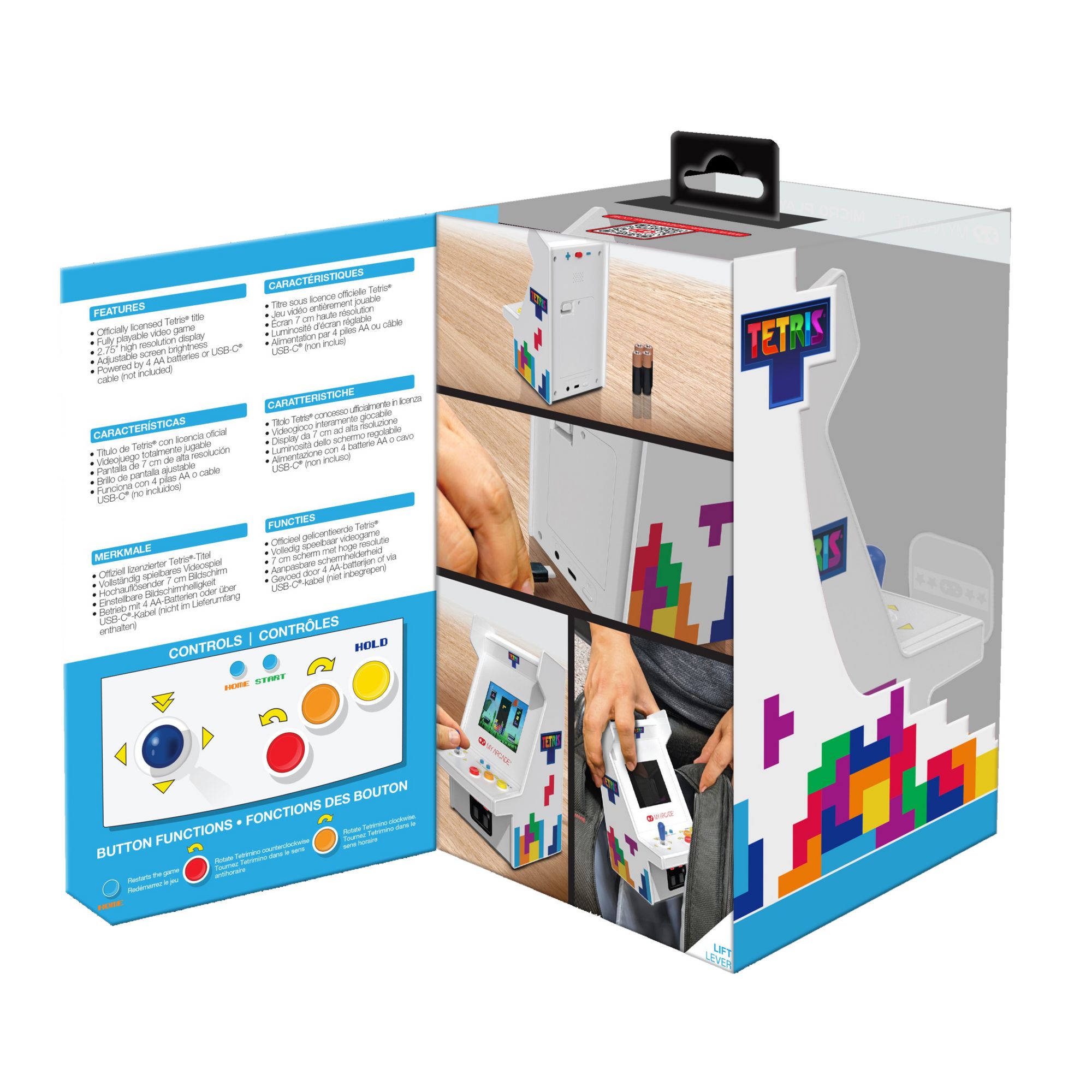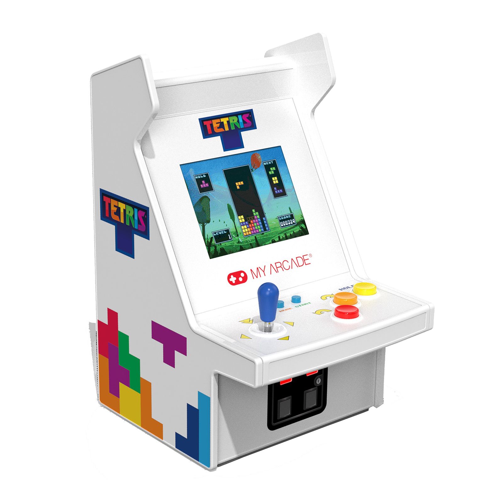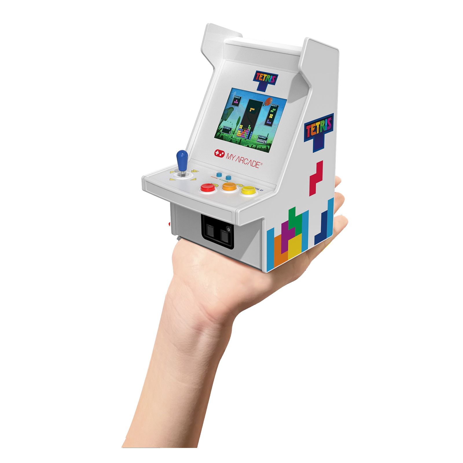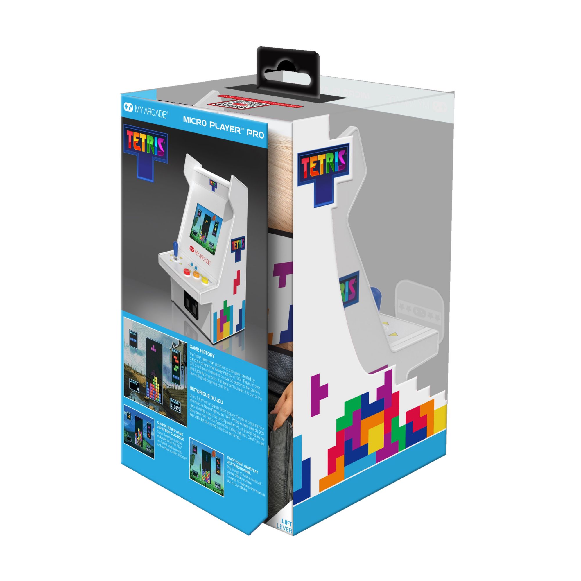 Geometric shapes fall from the top of a playfield to rest on the bottom; fit the pieces together and the formed line will disappear. If the pieces are not lined up correctly they eventually stack up to the top of the playfield and the game is over. The Micro Player Pro features a fully playable Tetris game, a 2.75" high-resolution display, adjustable screen brightness and a 3.5mm headphone port.