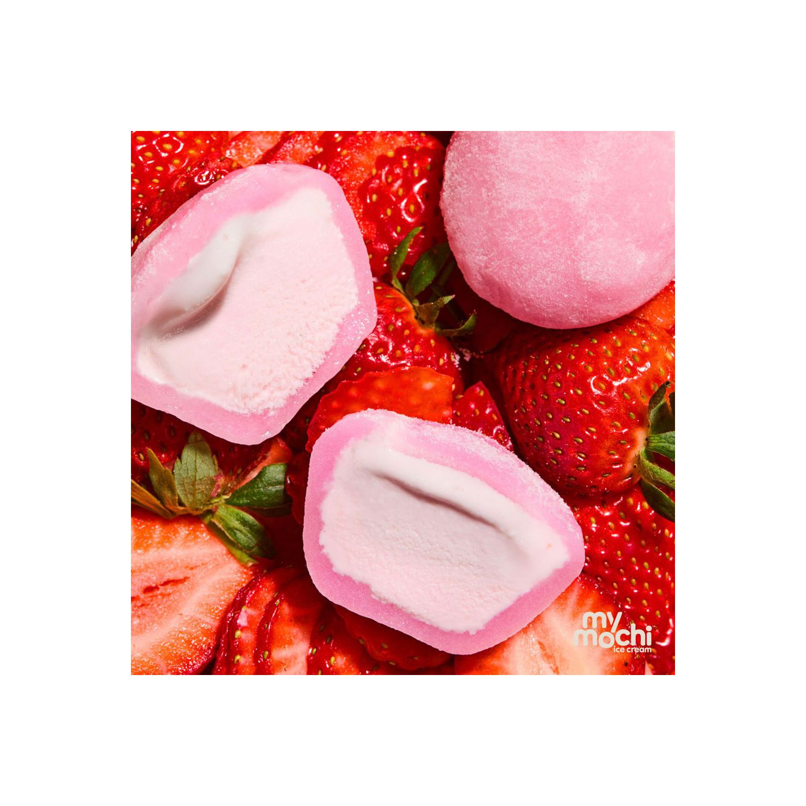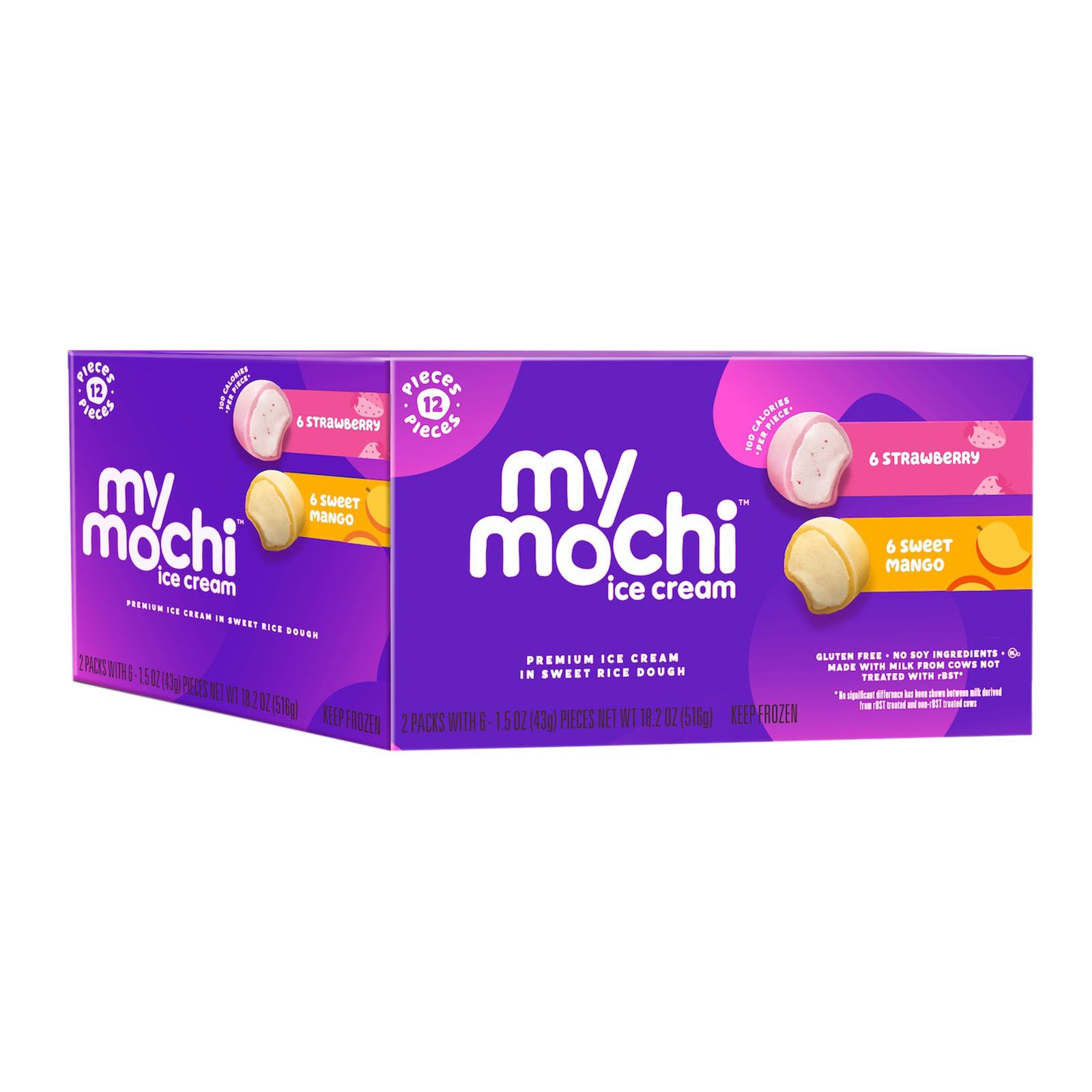 My/Mochi Ice Cream is pillowy sweet dough wrapped around premium ice cream for unprecedented puffnificence. First, take an instant trip to Tropical Delicioustown with Sweet Mango My/Mochi Ice Cream. The tangy and sweet taste of premium mango ice cream wrapped in sweet mochi dough gives your cravings their own cravings. Then, bite into the center of Mmmmm with a whole new take on an all-time favorite with Strawberry My/Mochi Ice Cream. It's made with real fruit and bursting with sweet bits of strawberry love. Each My/Mochi Ice Cream Variety Pack includes six Sweet Mango and six Strawberry mochi ice cream balls in every box. Let the mouthboggling begin.