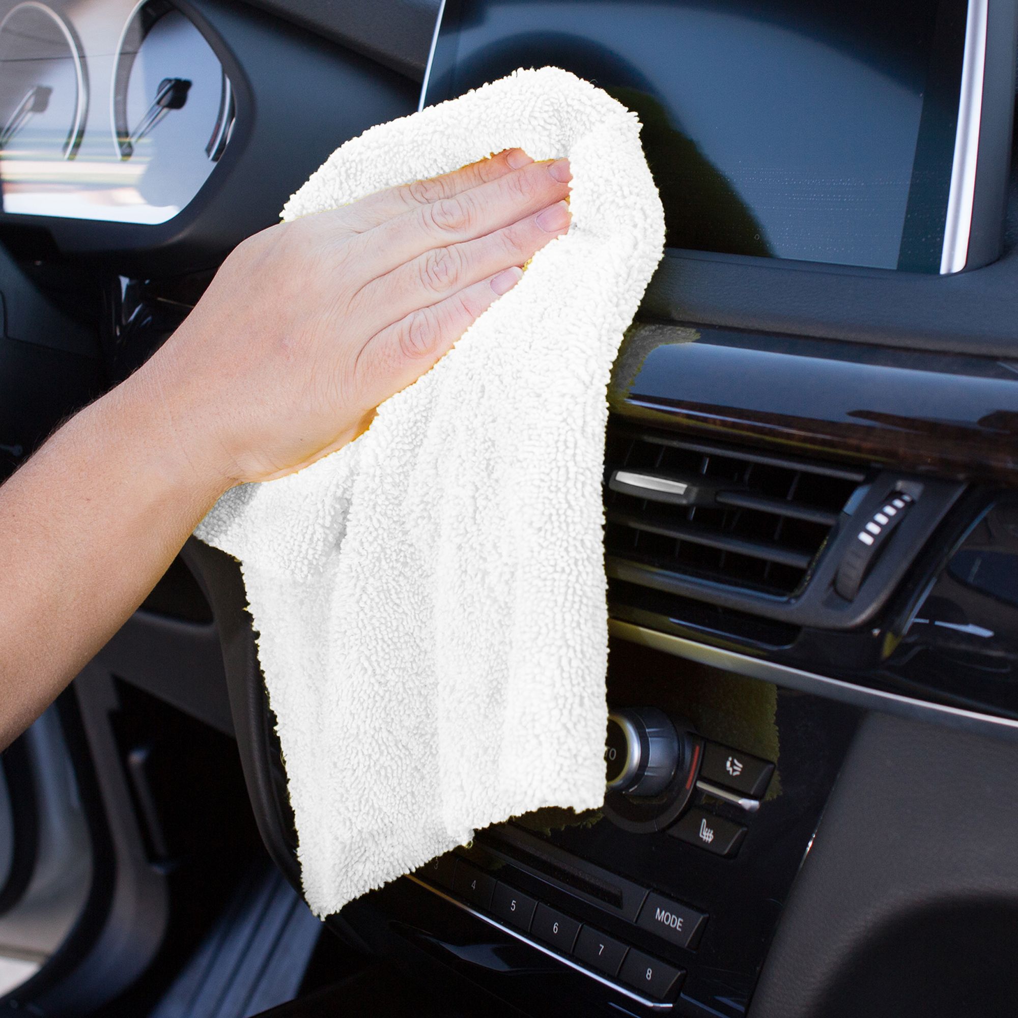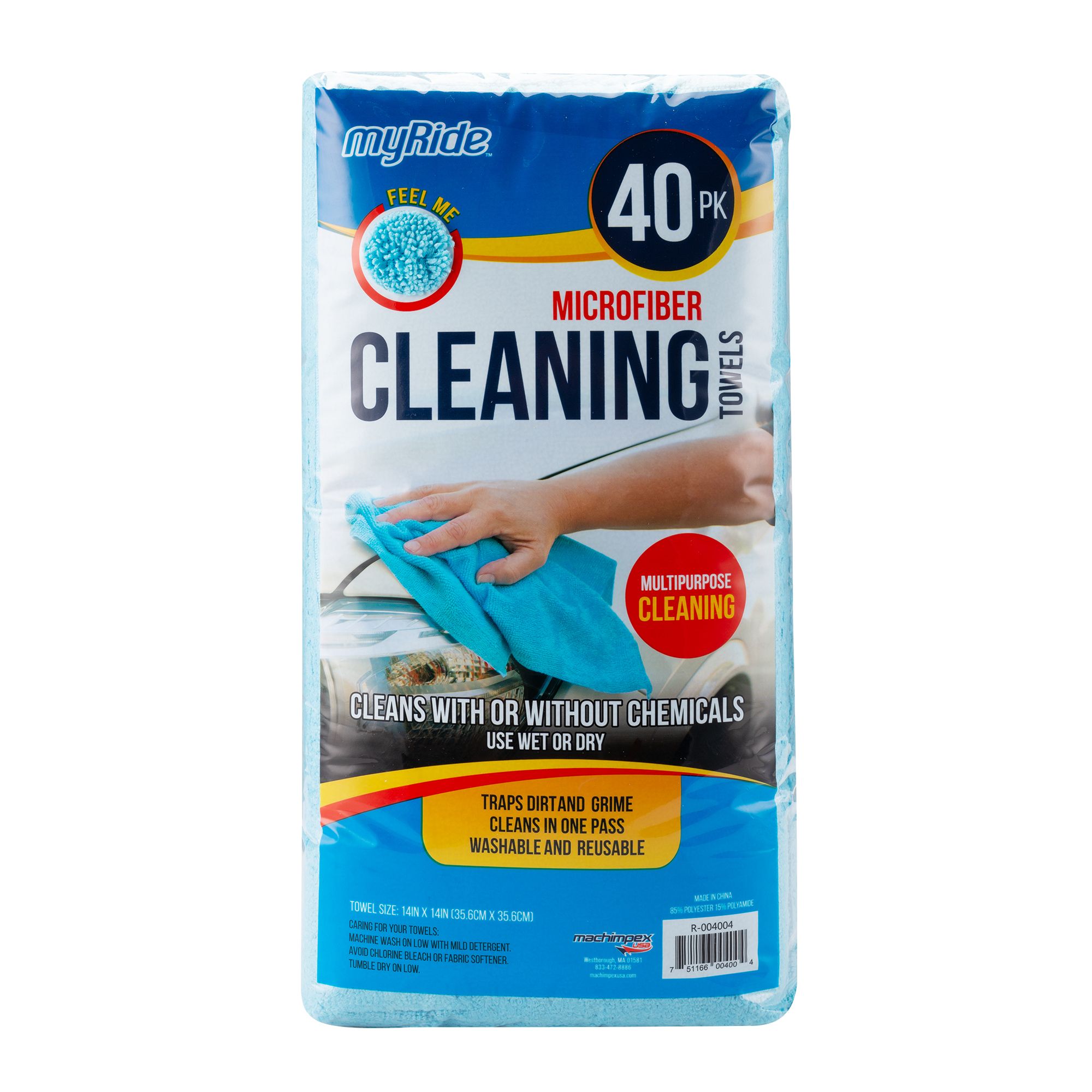 MyRide Multi-Purpose Microfiber Cleaning Towels, 40 pk. have no-scratch ultrasonic edges and are super absorbent. Long plush fibers trap dirt dust and grime with ease. These multi-purpose towels are washable and reusable for many uses again and again. Tackle all your dirty jobs inside and outside your vehicle, as well as all around the home. This is a large value pack of 40 towels, so that you will always have on hand for cleaning, drying, dusting or polishing. Microfiber picks up approximately 99% of bacteria without the need of chemicals and are safe to use on all surfaces. These towels are perfect to work into your car wash routine all around your vehicle. Always keep some on hand to handle all the cleaning jobs in the garage, kitchen, bath, office and more. For a deep clean pair up with your favorite glass cleaner, car wash, detailing spray or household cleaner for lint-free and streak-free results.
