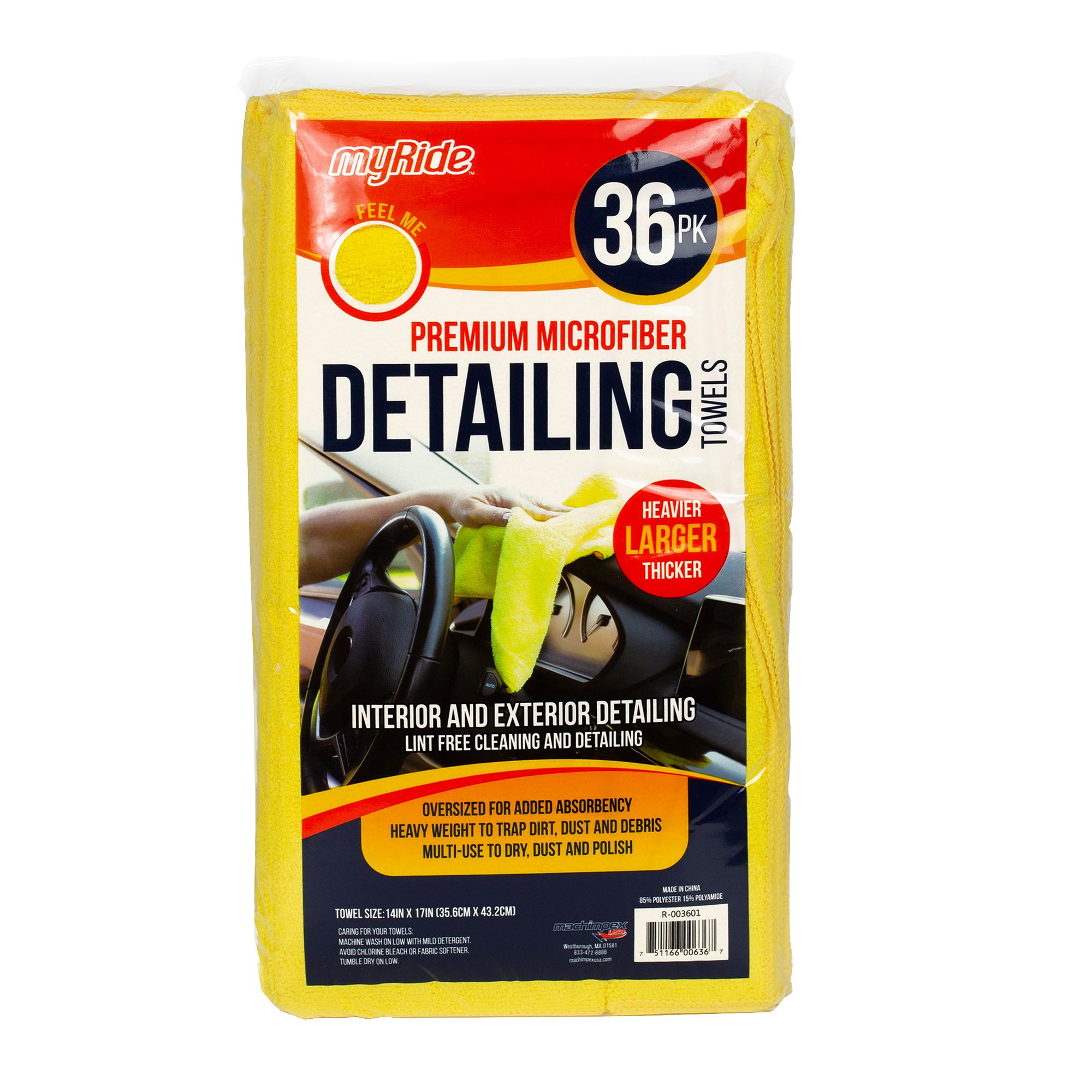 MyRide Premium Multi-Purpose Microfiber Cleaning & Detailing Towels, 36 pk. are ideal for cleaning and detailing your car, truck, van, and SUV inside and out. Large size of 14" X 17" and 300 GSM, these towels are the perfect size and weight for the professional car detailer or the at-home DIY car enthusiast. Thick microfiber is extremely absorbent and soaks up large volumes of water and other liquids. Heavy duty and professional grade microfiber traps dirt, dust and grime with ease. These towels will not leave behind lint or scratches and are perfect for glass cleaning and safe to use on all interior and exterior surfaces. These towels are extremely durable and will outlast your average cleaning towel. Wash and reuse at least 50 times. Pair up with your favorite cleaner or detailing product and be amazed by the results. Tackle any household cleaning job in the kitchen, bath, garage, patio and more with these multi-use towels.