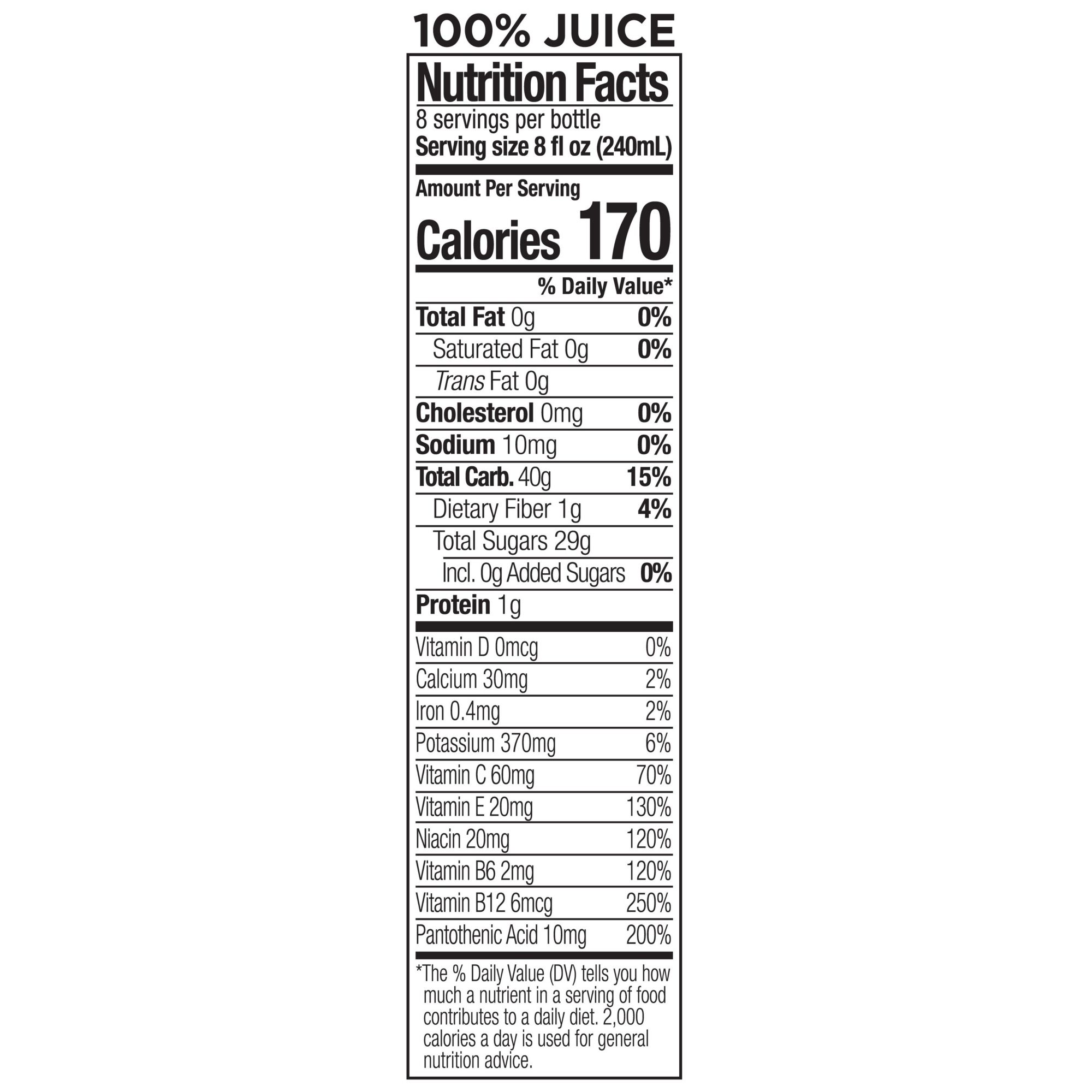Non-GMO No preservatives or sugar added Rainforest Alliance Certified Includes 64 oz. of fruit juice