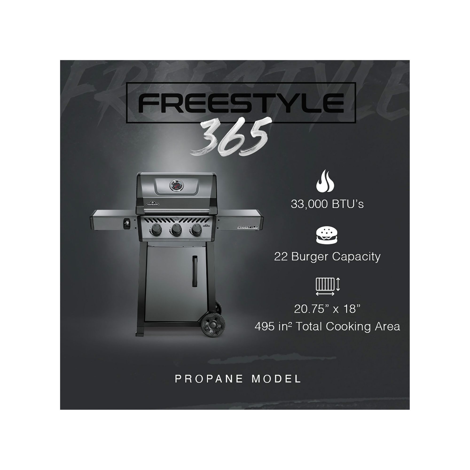 Napoleon Freestyle 365 Propane Grill with Bonus Grill Cover - Graphite Gray