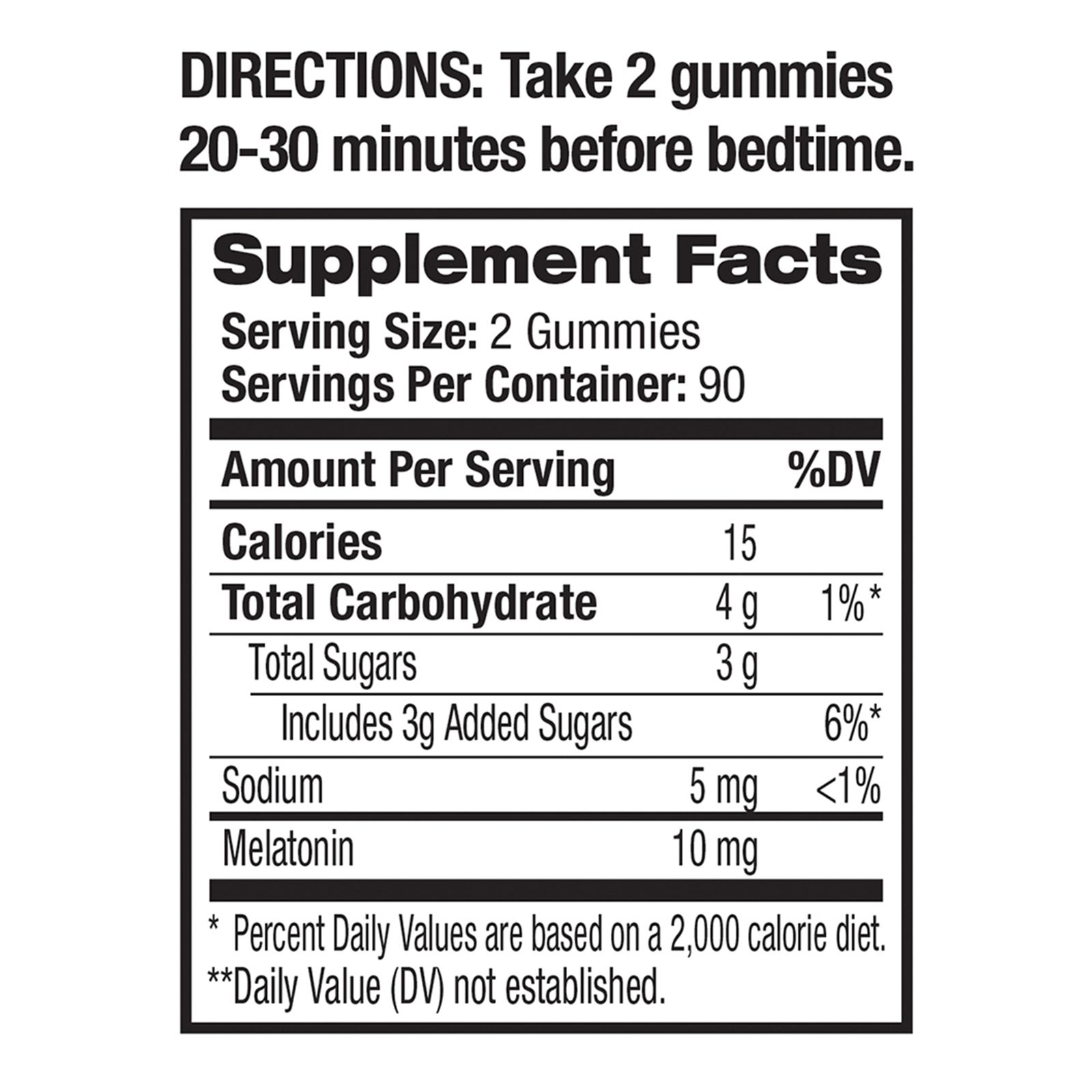 Natrol Melatonin 10mg Gummies are a nighttime sleep aid Melatonin is naturally produced by our bodies to help manage sleep cycles, but its balance can be easily disrupted Natrol Melatonin helps you fall asleep faster, stay asleep longer, and wake up feeling rested Natrol Gummies are non-GMO, made with organic sweeteners, and are free of artificial flavors, sweeteners, colors or preservatives Natrol Gummies are pectin based and contain no gelatin, so they are less likely to stick to teeth than standard gelatin gummies The gummies are available in a great tasting strawberry flavor 100% Drug-Free: Natrol Melatonin Gummies are 100% drug-free, non-habit forming, and causes no morning grogginess