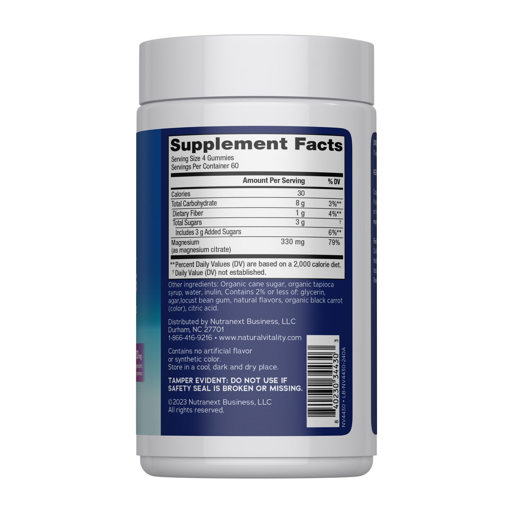 Ingredients: Magnesium (As Magnesium Citrate), Organic Cane Sugar, Organic Tapioca Syrup, Water, Inulin, Contains 2% Or Less Of Glycerin, Agar, Locust Bean Gum, Natural Flavors, Organic Black Carrot (Color), Citric Acid.