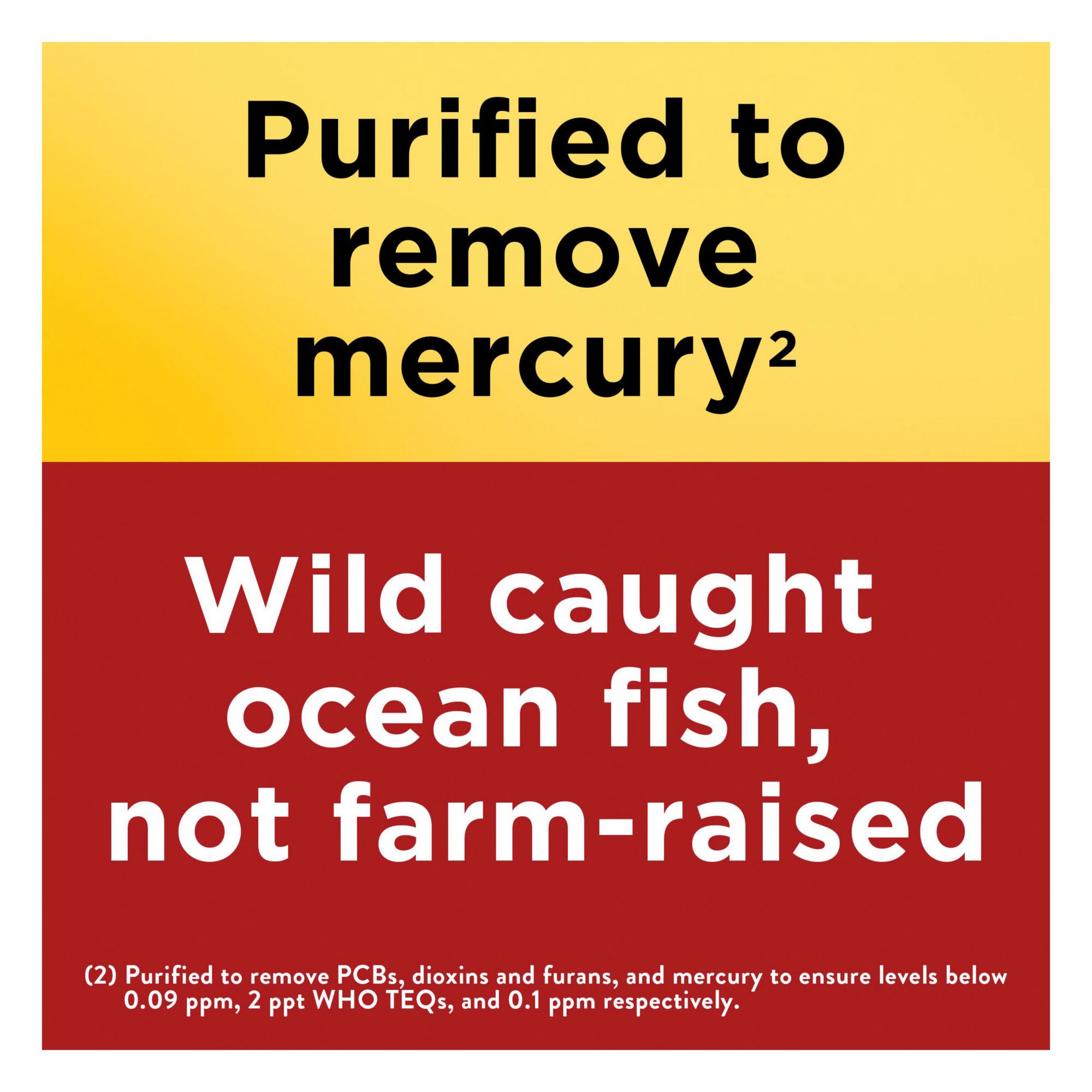 **Purified to remove PCBs, dioxins and furans, and mercury to ensure levels below 0.09 ppm, 2 ppt WHO TEQs, and 0.1 ppm respectively.
