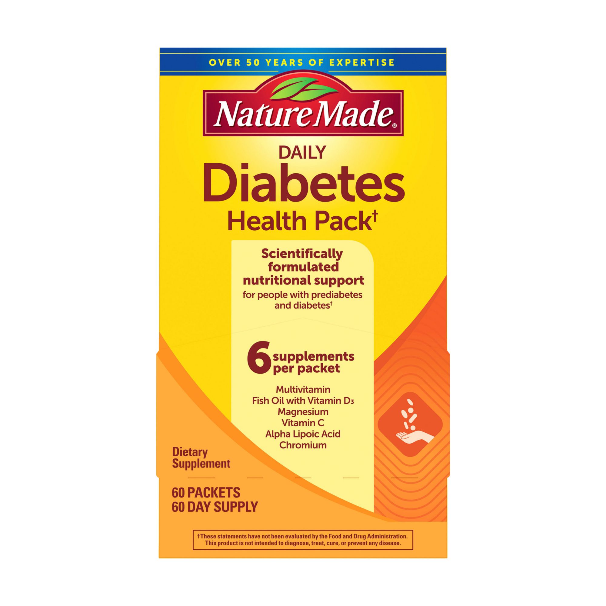 Diabetes nutritional supplement: contains one 60 count box of Nature Made Diabetes Pack for a 60-day supply