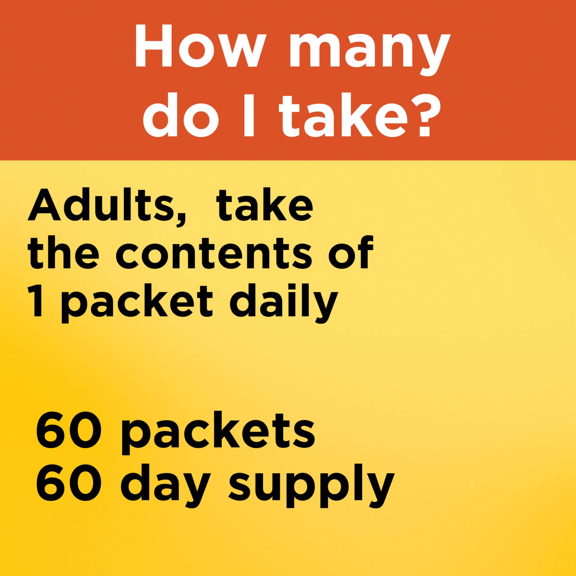 Adults take the contents of one pack daily with water and a meal