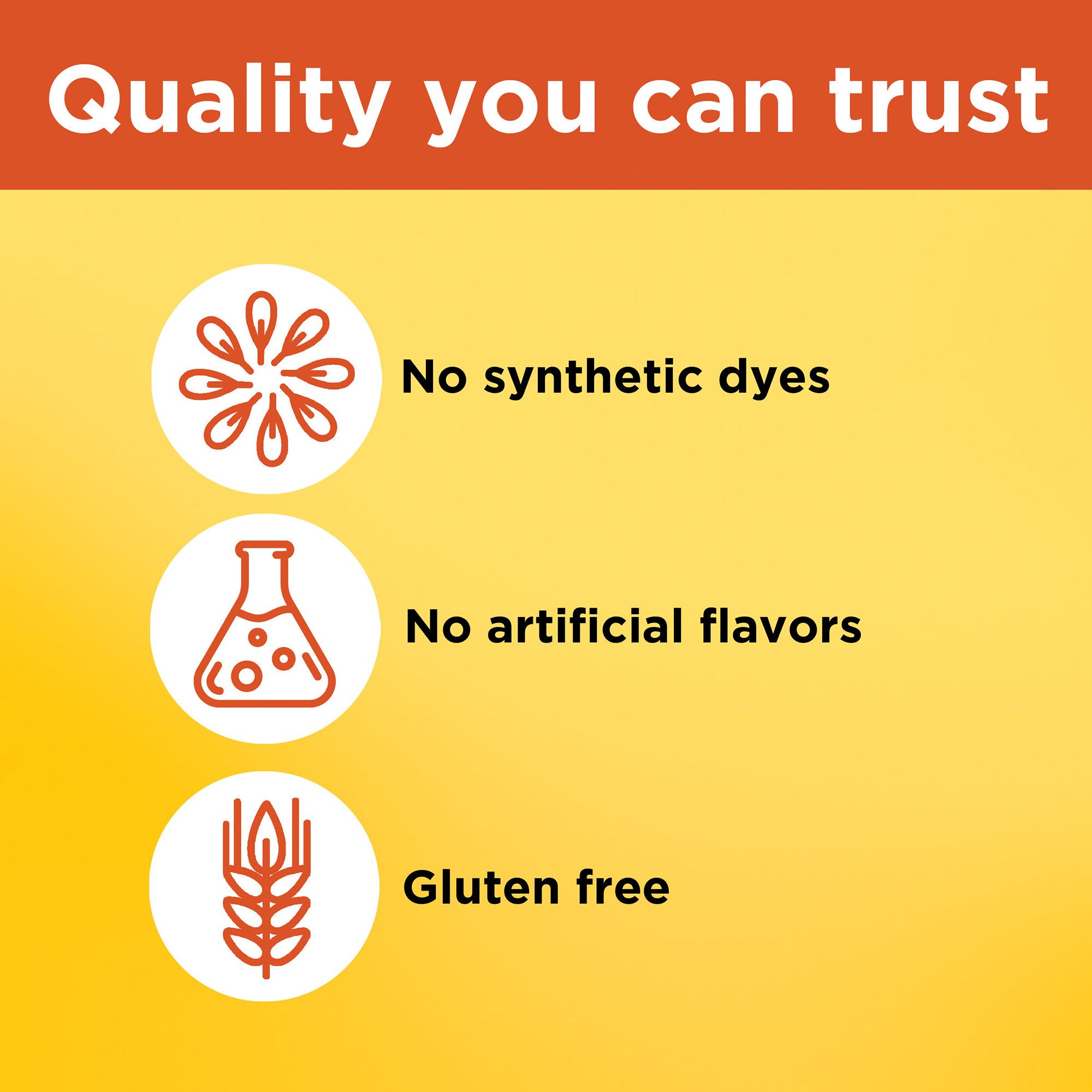 This gluten free supplement has no synthetic dyes and no artificial flavors