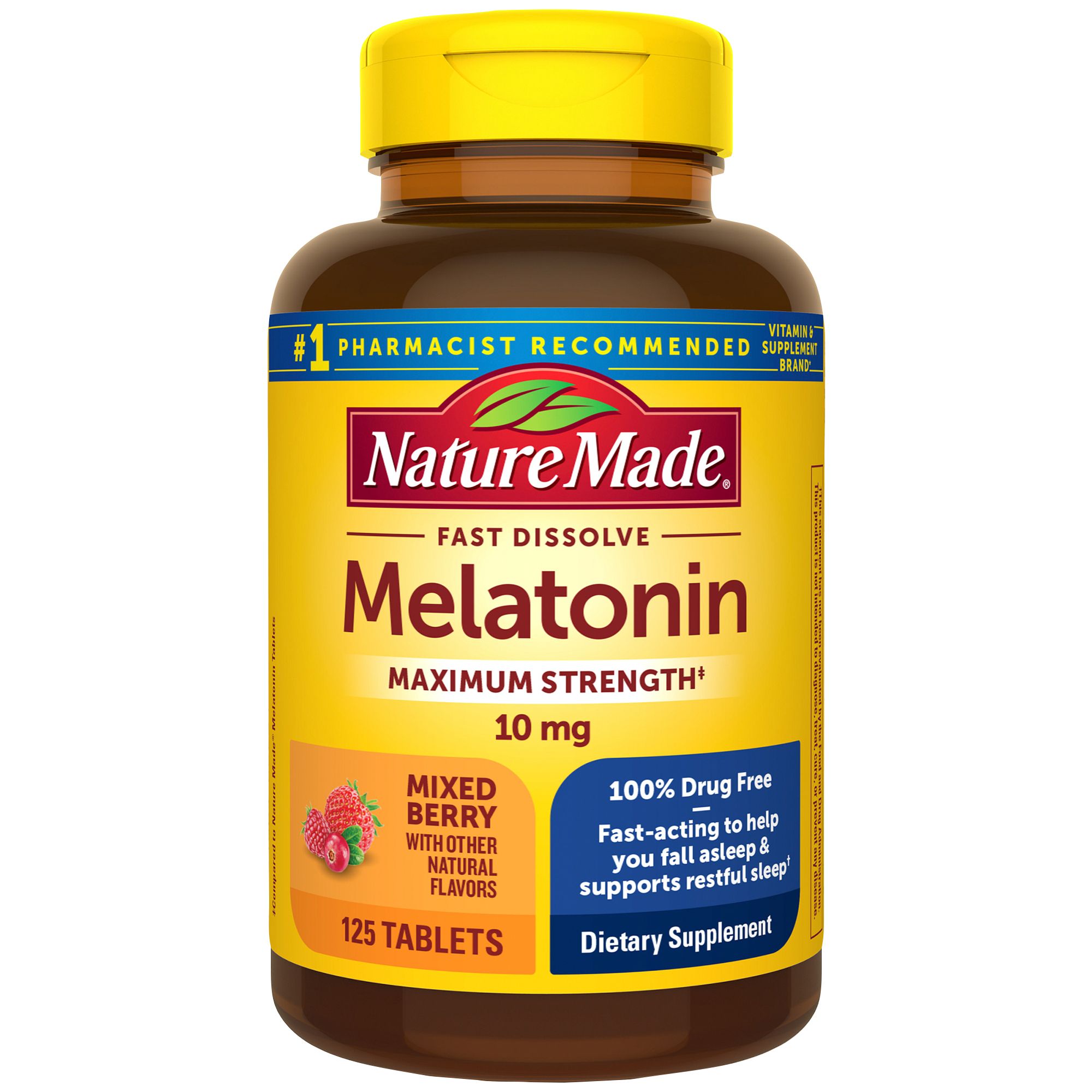 • Maximum strength* sleep support supplement: Contains one 125 count bottle of Nature Made Fast Dissolve Melatonin 10mg Tablets for a 125-day supply