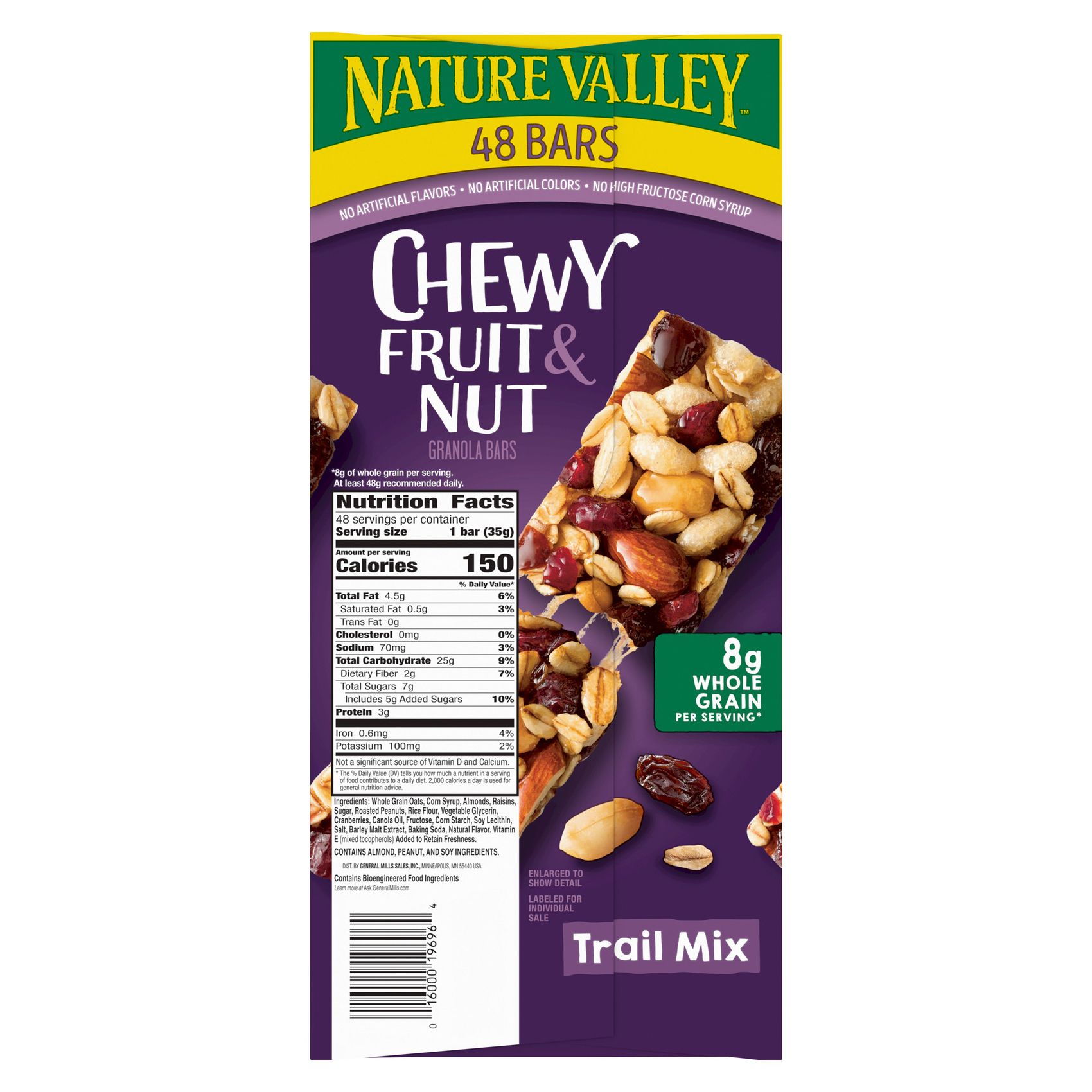 Nuts, seeds and dried fruits lend the Nature Valley Fruit & Nut Trail Mix Chewy Granola Bars an irresistible flavor you'll enjoy whether you're lounging at home or exploring the great outdoors. Made with no artificial flavors and real nuts, raisins and granola. Each bar delivers 8g of whole grain through natural, whole-grain oats.