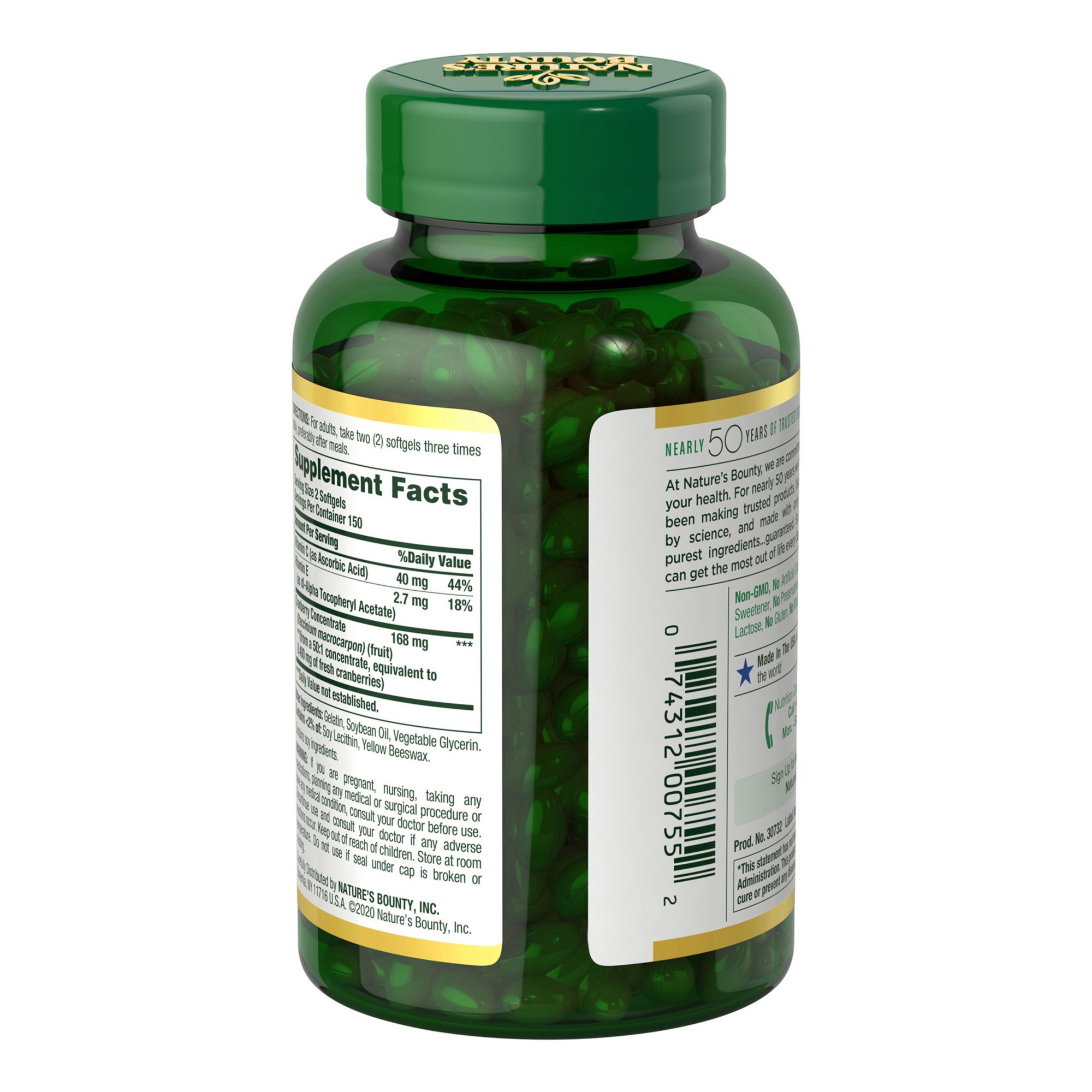 Nature's Bounty Cranberries help support the integrity of bladder walls to promote urinary health in both men and women.* This product also contains Vitamin C that plays a role in supporting immune function.* Made from the finest cranberry concentrate available.