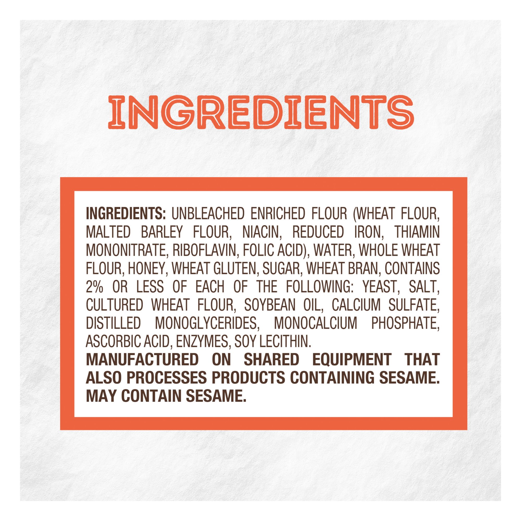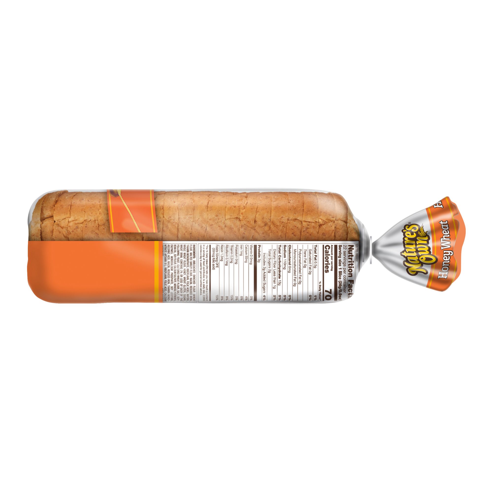 Low fat Cholesterol free Zero gram of trans fat per slice No artificial preservatives No artificial color No artificial flavor No high fructose corn syrup Includes two pack of 20-oz. honey wheat bread