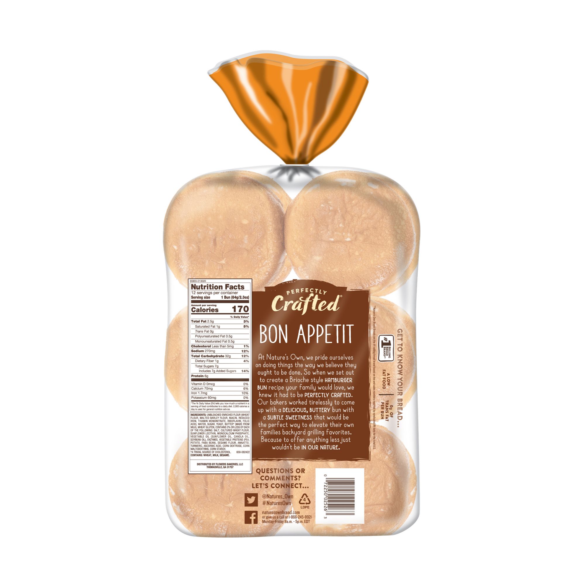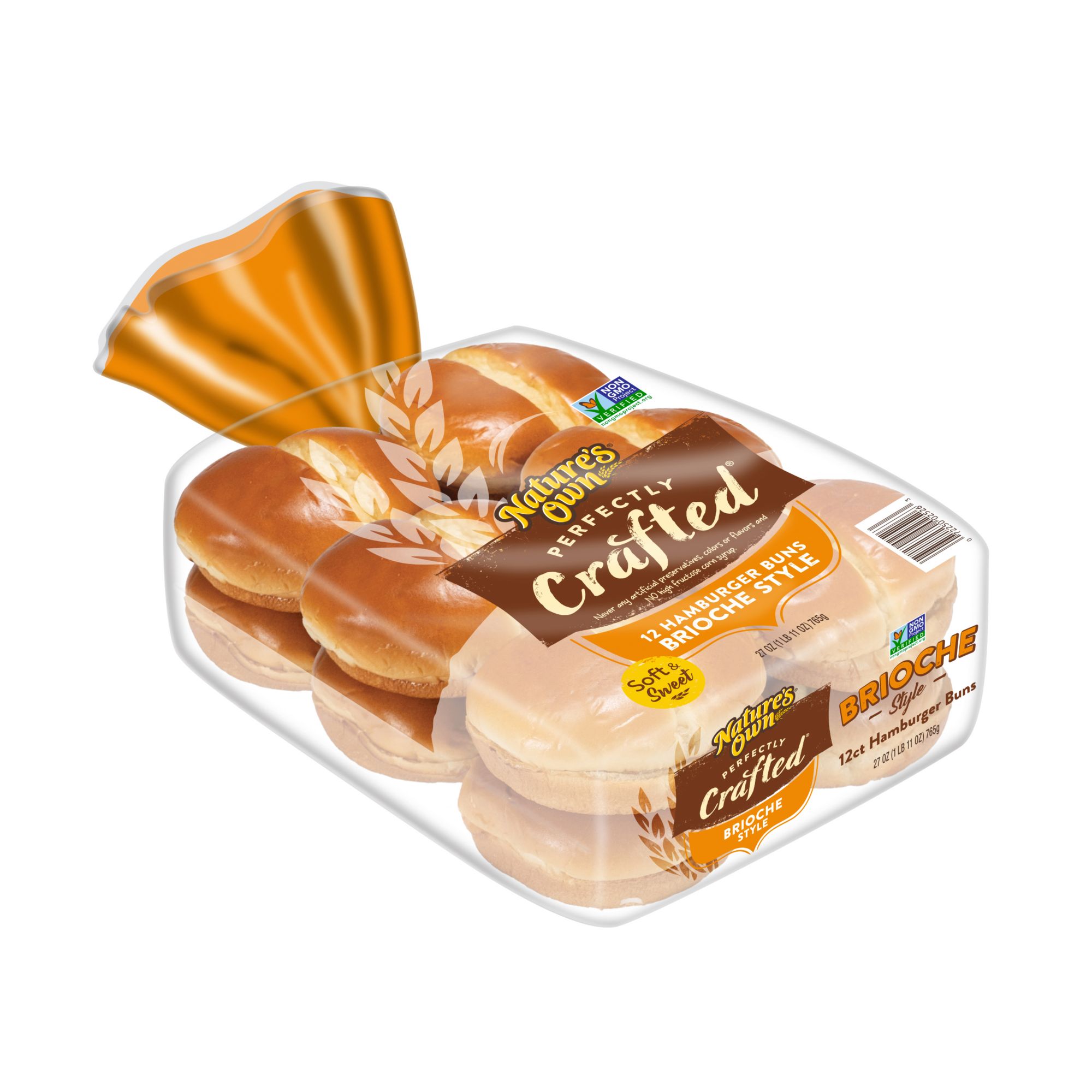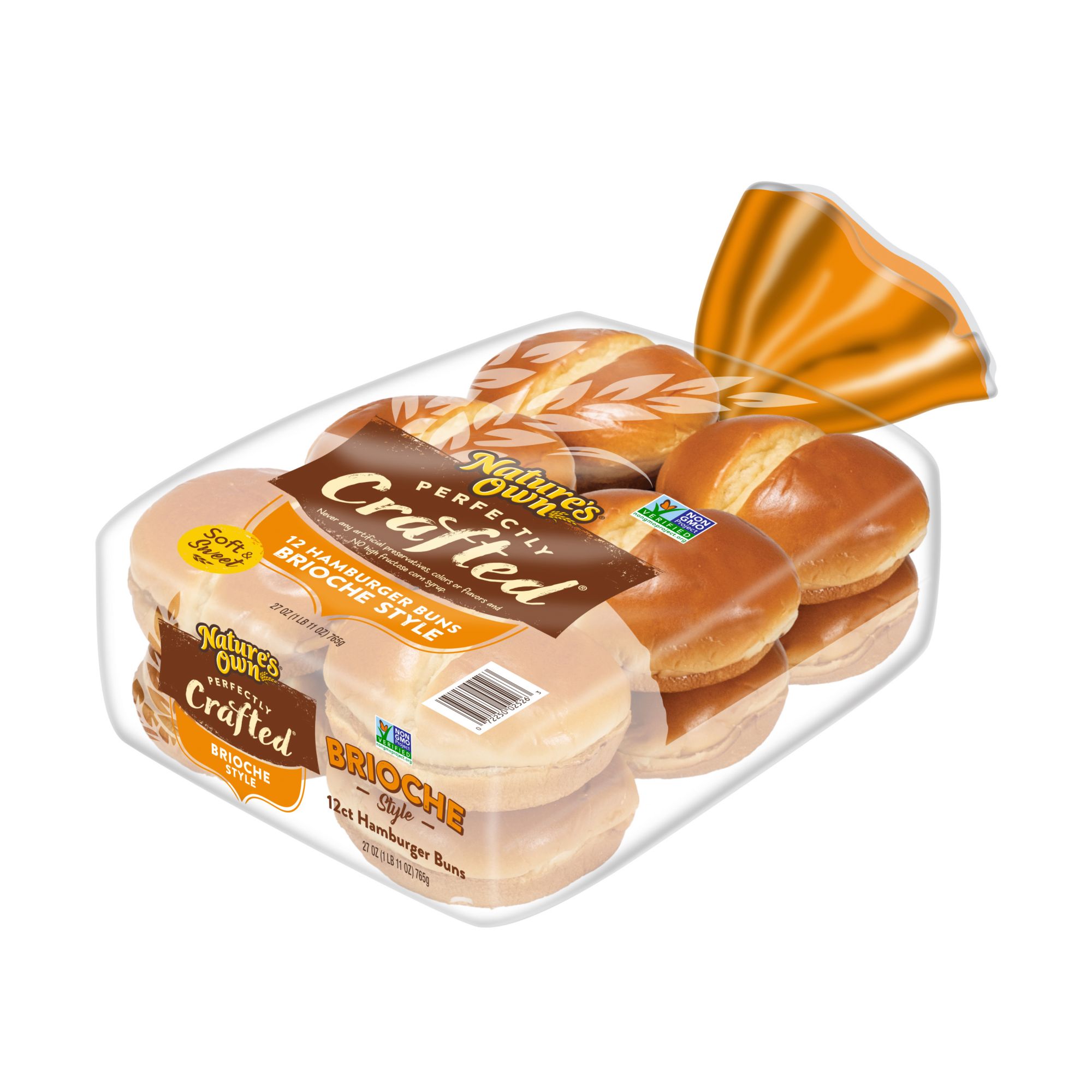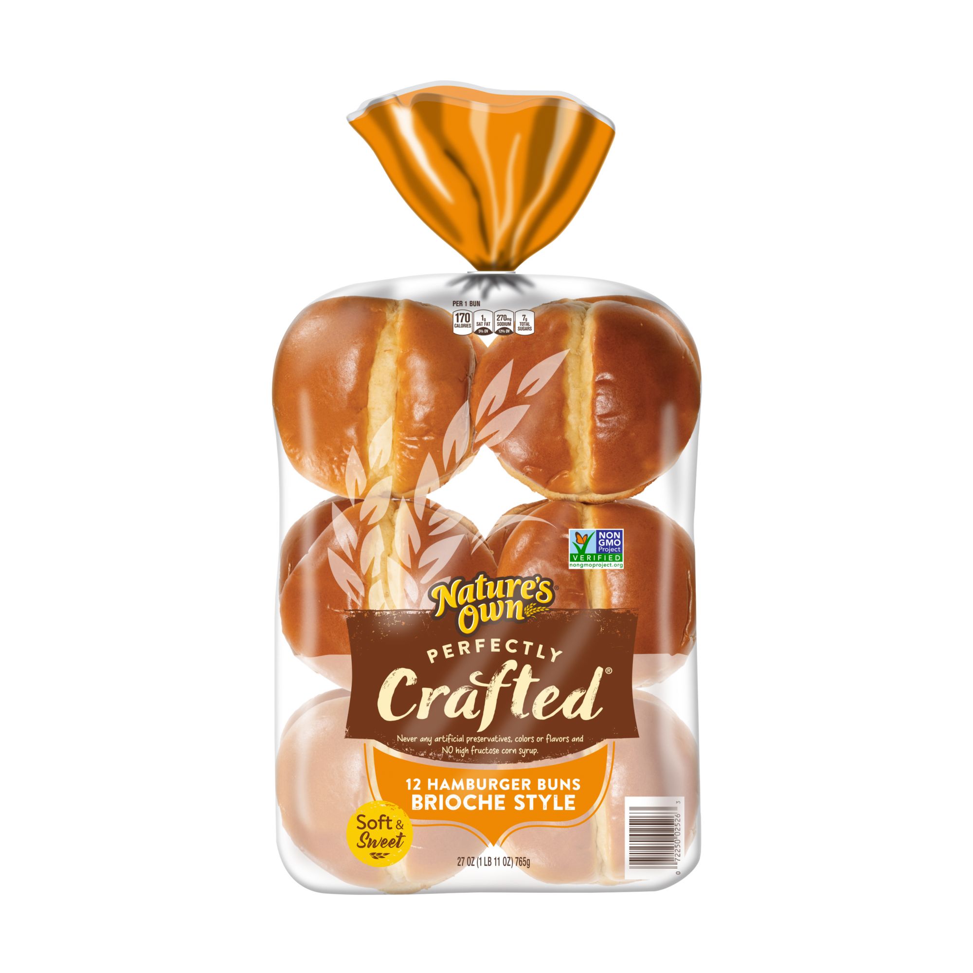 Nature's Own Perfectly Crafted Brioche Style Hamburger Buns set the bar high for your next barbecue with their soft texture and subtle sweetness. With 12 fluffy and delicious brioche style burger buns, you can add a gourmet touch to picnics, family gatherings or camping. Load them up with juicy burgers and all the toppings, or add some sweetness to pulled pork sandwiches with cole slaw. Nature's Own Perfectly Crafted soft hamburger buns have no artificial preservatives, colors or flavors, and no high-fructose corn syrup. Plus, you can trust that all Perfectly Crafted products from Nature's Own are Non-GMO Project Verified. You'll feel confident serving family and friends delicious choices from Nature's Own bread, America's #1 selling loaf bread brand.* Nature's Own Perfectly Crafted means indulgence, artisan style, bakery-inspired and perfectly delicious. From multigrain and rye bread to brioche style buns and rolls, Nature's Own Perfectly Crafted products help you bring creativity back to your kitchen and serve meals worthy of your friends and family. All Nature's Own Perfectly Crafted products have no artificial preservatives, colors or flavors, and no high fructose corn syrup and are Non-GMO Project Verified.