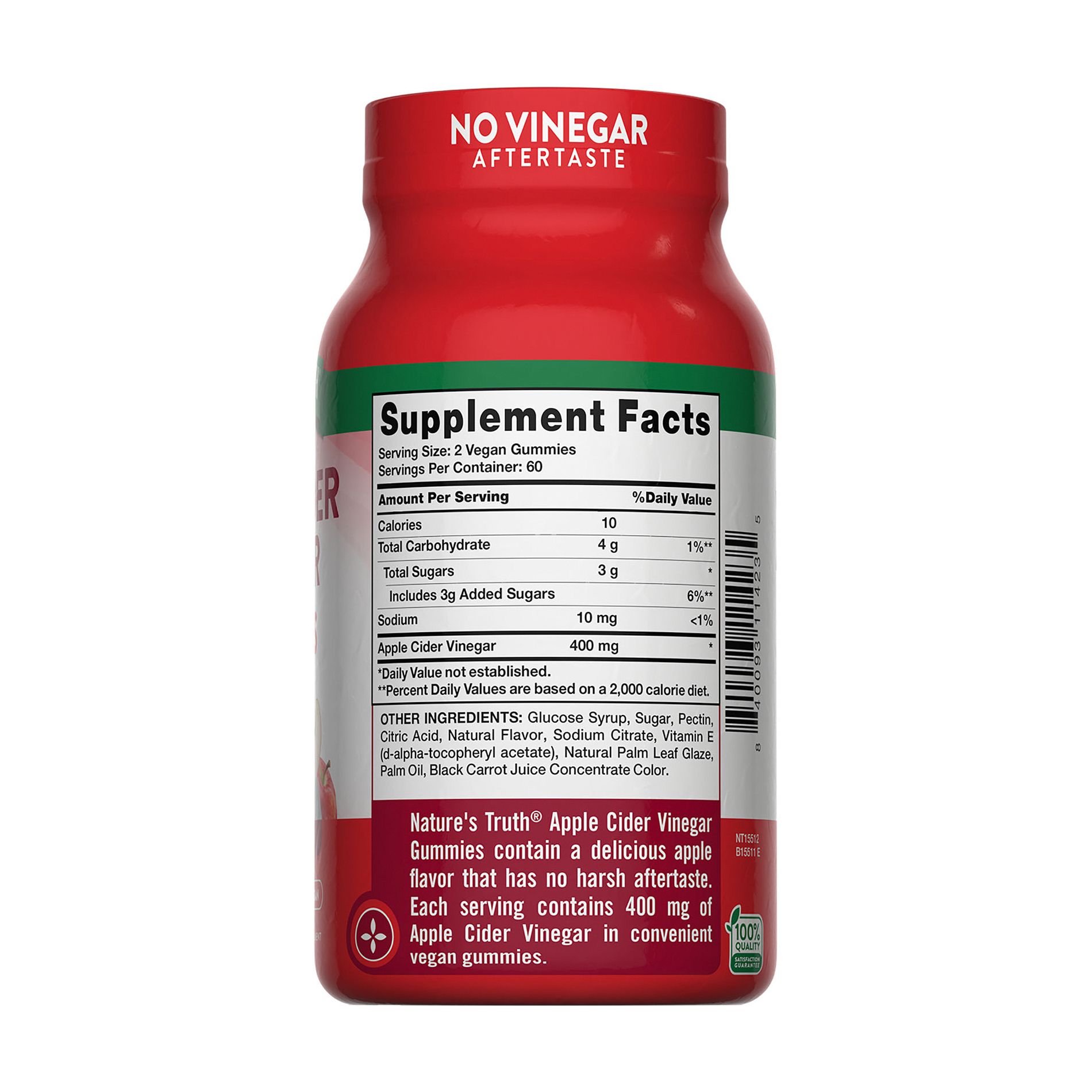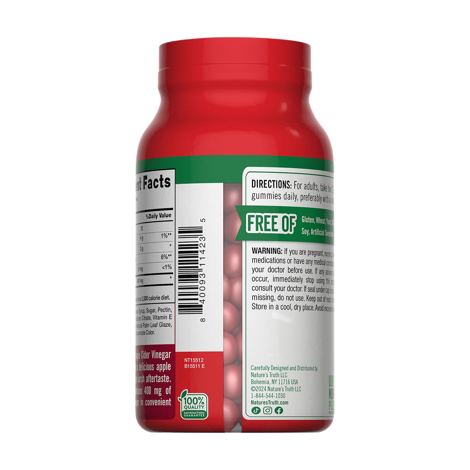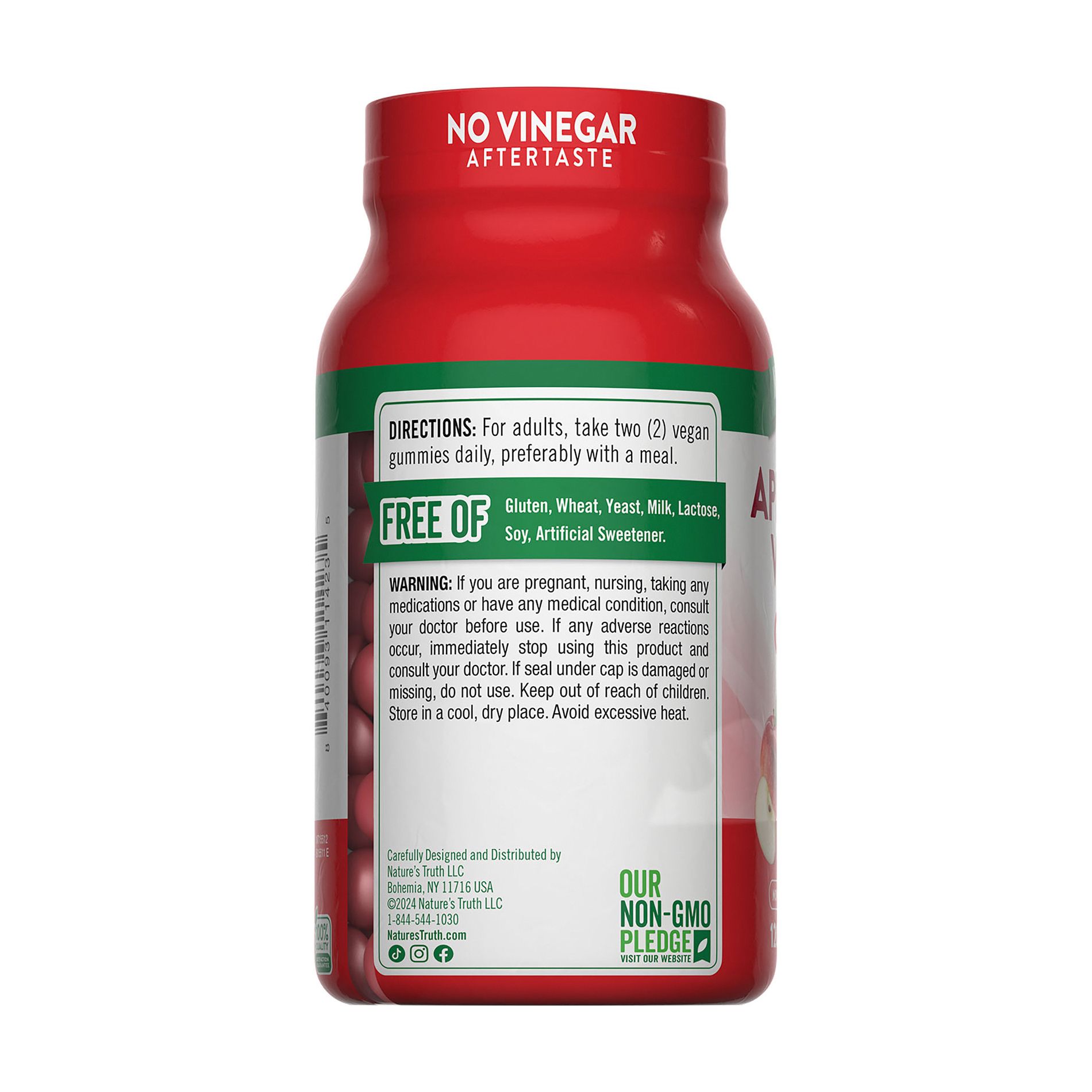 Nature’s Truth® Apple Cider Vinegar gummies are made with only the best ingredients. They are non-GMO, gluten free, wheat free, yeast free, milk free, lactose free, and soy free. They were created without any artificial color, artificial flavors, artificial sweeteners, or preservatives. Each capsule is packed with naturally occurring vitamins and nutrients that will leave you feeling positive about your daily wellness routine.