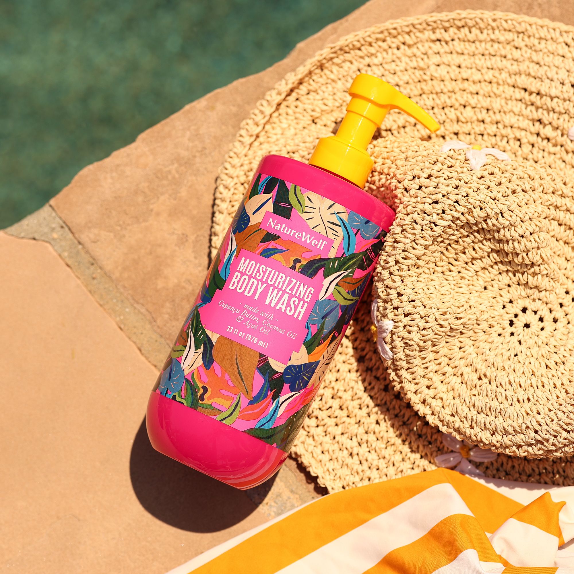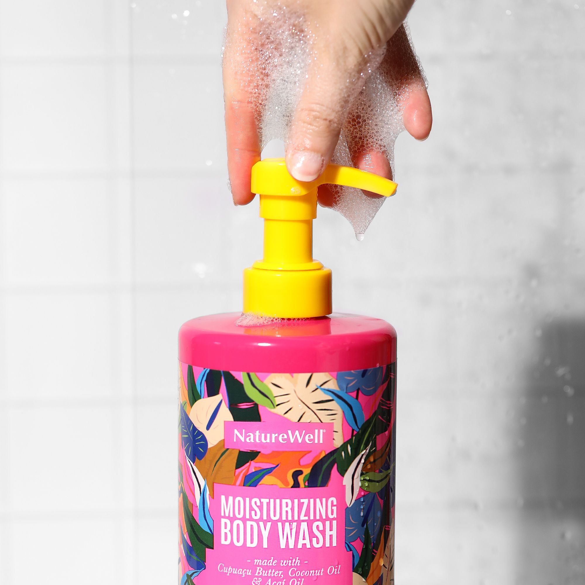 Pamper your skin with NatureWell's Moisturizing Body Wash. This luxurious, creamy cleanser washes away daily dirt and grime while leaving your skin feeling soft, smooth, and luminous. Infused with a nourishing blend of cupuaçu butter and coconut oil, this body wash provides deep hydration and helps relieve dry skin. It's enriched with Acai Oil and Guarana Extract, promoting a healthy-looking appearance. Make each bath or shower an aromatic experience reminiscent of summer days with the captivating scent of Brazilian nut oil blended with pistachio cream. This body wash transforms your shower into a calming tropical oasis. It features gentle ingredients like glycerin, which supports the skin barrier and locks in moisture, and aloe juice, which ensures your skin stays hydrated. Simply massage this creamy foam into damp skin and rinse off to reveal refreshed and moisturized skin. With each use, you not only cleanse but also condition your body, thanks to the blend of moisturizing ingredients. This body wash is a nourishing ritual for daily care that leaves your skin feeling revitalized and refreshed.