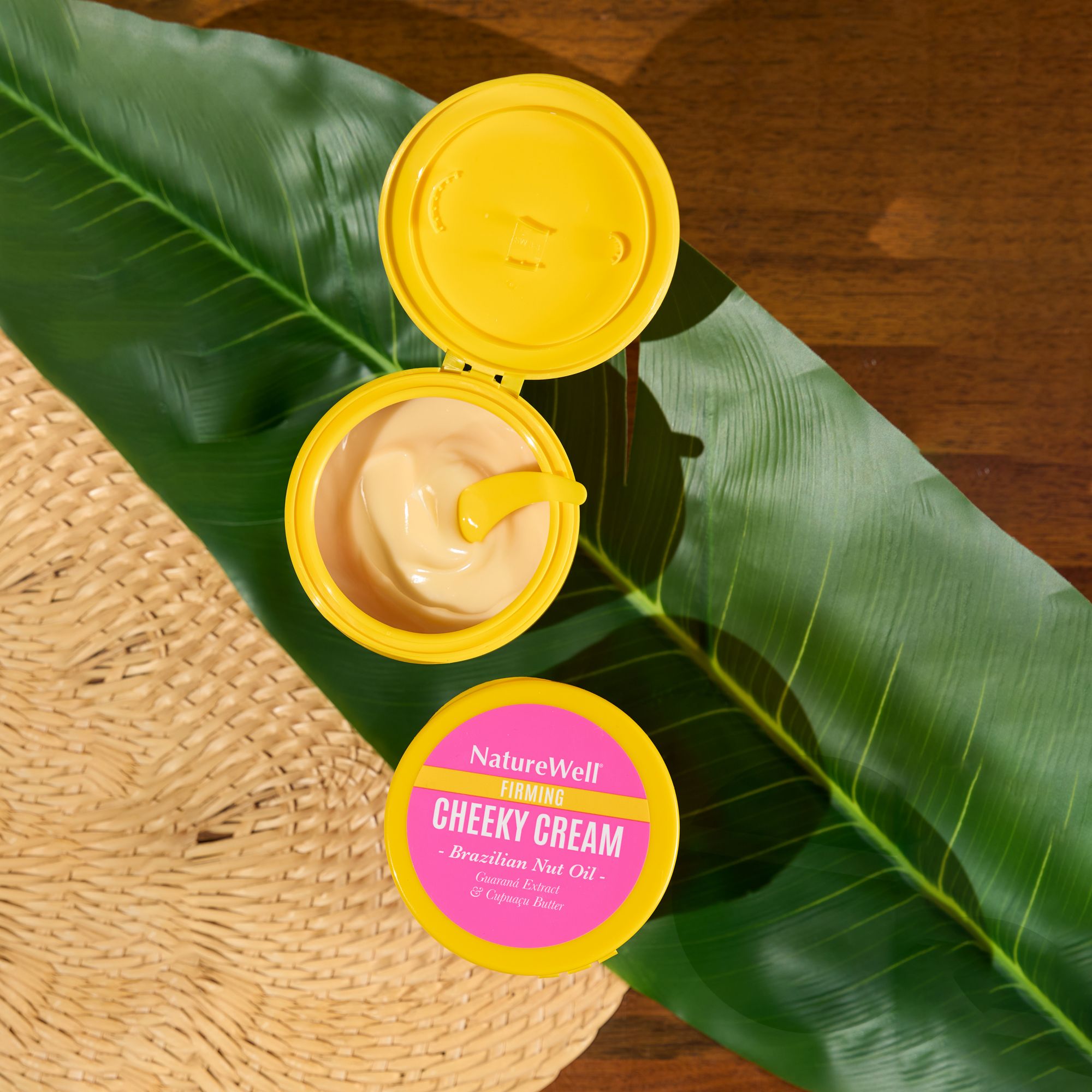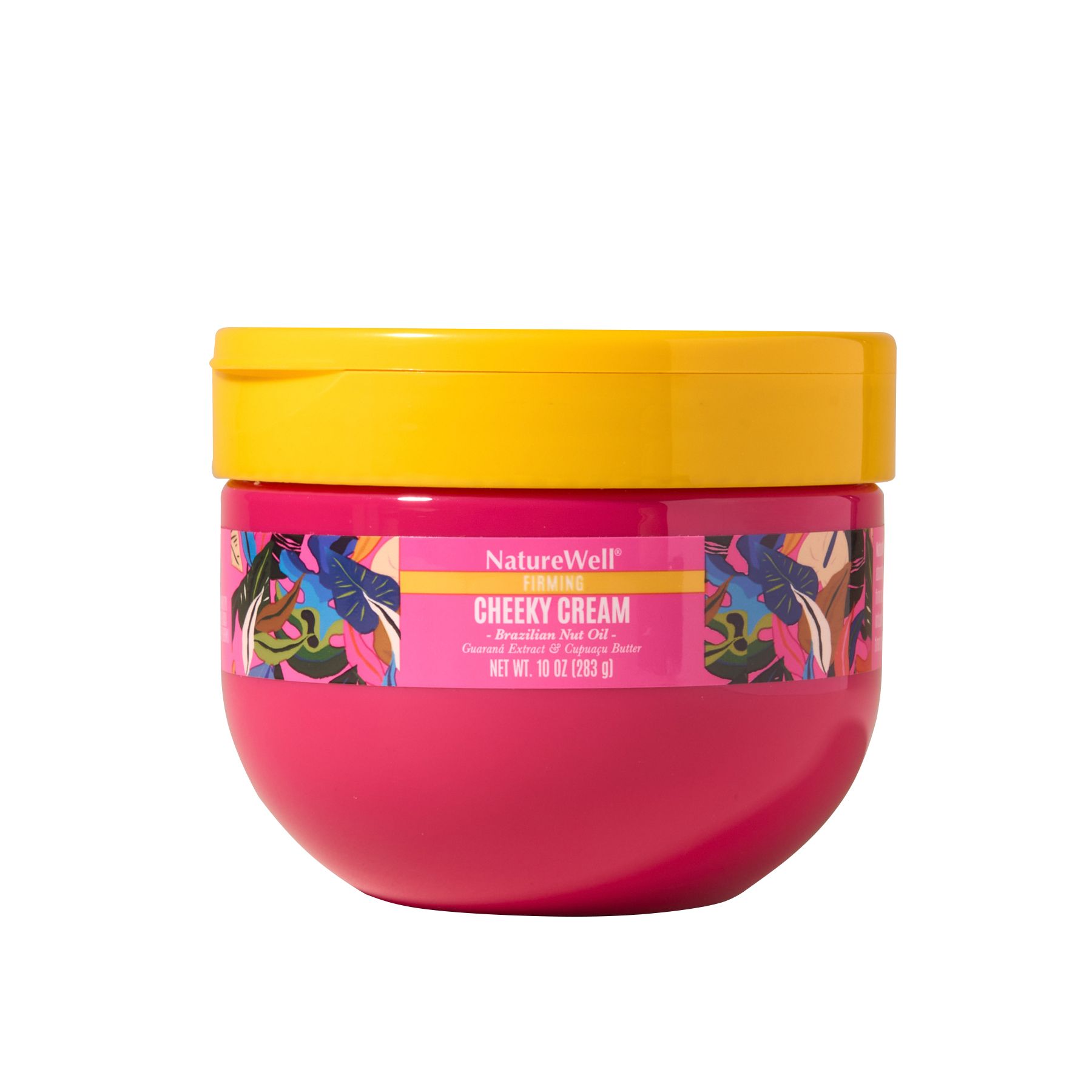 NatureWell’s Firming Cheeky Cream is a quick-absorbing body cream that deeply hydrates and promotes a youthful-looking skin. This ultra-rich, non-greasy cream leaves your skin glowing, without any oily residue. It is formulated with potent ingredients including Caffeine, Cupuacu Butter, Brazil Nut Oil, and Guarana Extract, which work together to firm and brighten your skin. Additionally, these ingredients create a warm and sweet aroma that lingers on your skin, making you smell as good as you feel. This Firming Cheeky Cream is rich in antioxidants which help stimulate tired and dull skin. Over time, your skin will appear more rejuvenated and smoother. The cream comes in an exclusive 2-pack, each containing a 10-ounce jar. This means you'll always have a jar within reach when you need it. To make it even more convenient, each jar comes with a flip-top lid for easy access and a scooping spatula applicator that clicks back into place after use. To use, simply scoop a generous amount and massage it all over your body in a circular motion. Apply it anywhere you want your skin to look firm, hydrated, and smoother. It's that easy!