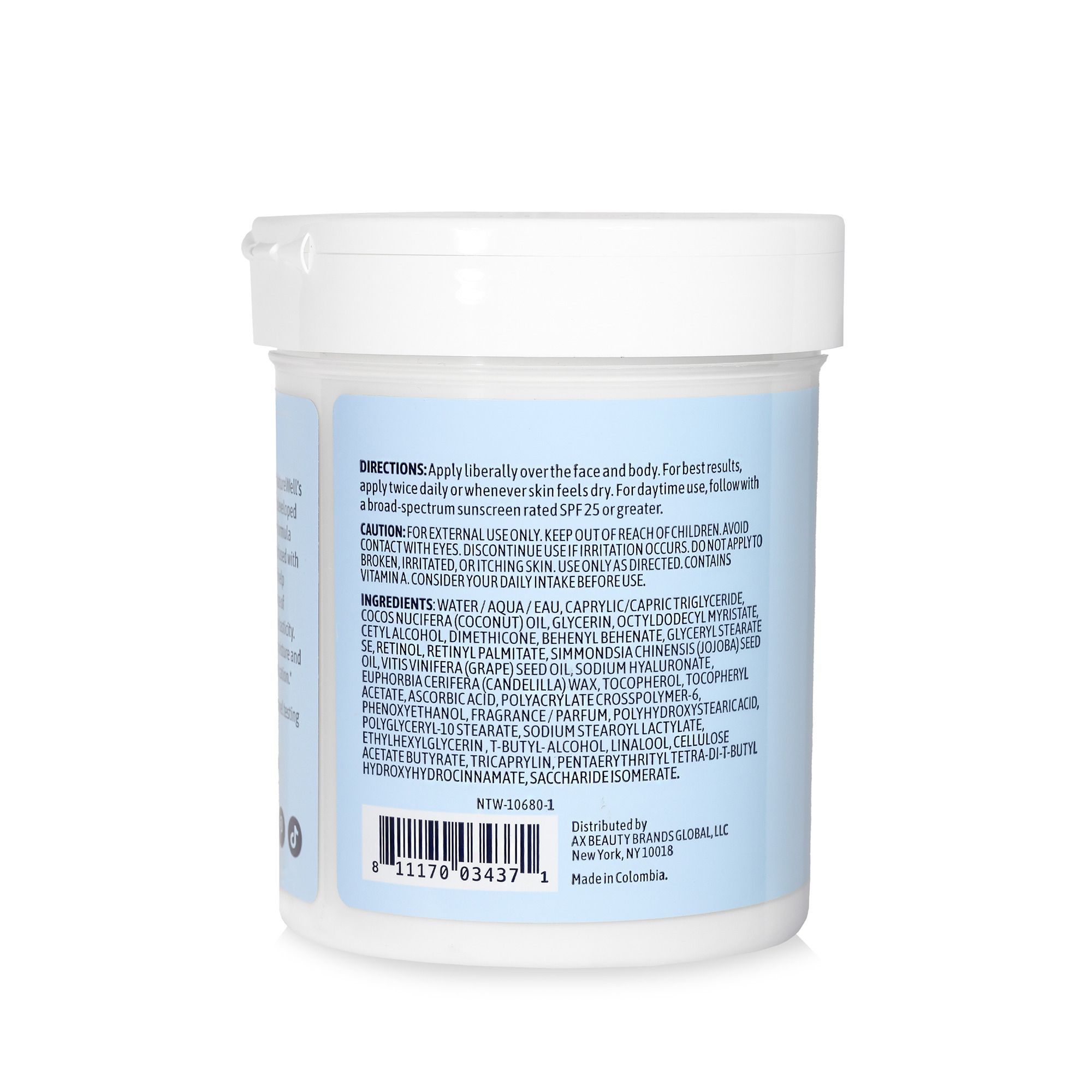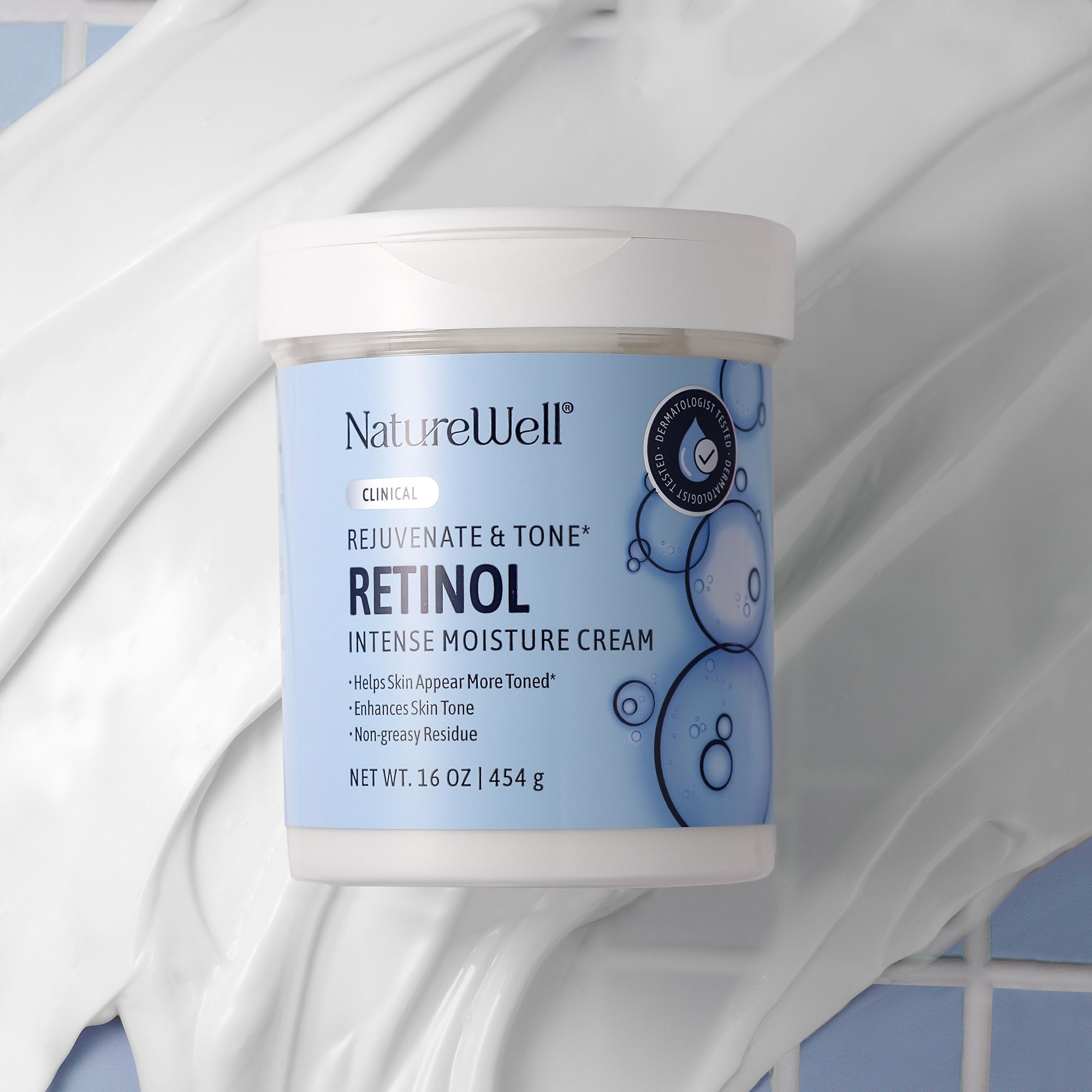 Experience the art of rejuvenation with this Retinol Moisturizing Cream. Crafted with advanced micro-encapsulated retinol, this cream fortifies firmness, elasticity, and skin. Formulated with advanced micro-encapsulated retinol for improved efficacy and enhanced delivery. Improves skin tone and texture, boosts firmness and elasticity, and smooths skin. Developed for all skin types. NatureWell creams are designed with your daily self-care routine in mind. Immediately apply after a relaxing hot shower or bath to allow the velvety formula to absorb deeply into the skin and the delicious scents to invigorate your senses. NatureWell's luxuriously rich creams melt into the skin, leaving it nourished and delectably silky and smooth. No greasy marks on clothing or bed sheets. Dermatologist Tested, Cruelty-free, contains no parabens, dyes, gluten, artificial colors or flavors. For best results: Apply liberally over the face and body. For best results, apply twice a day or whenever skin feels dry. For daytime use, follow with a broad-spectrum sunscreen. If irritation occurs, reduce frequency. If irritation persists, discontinue use.