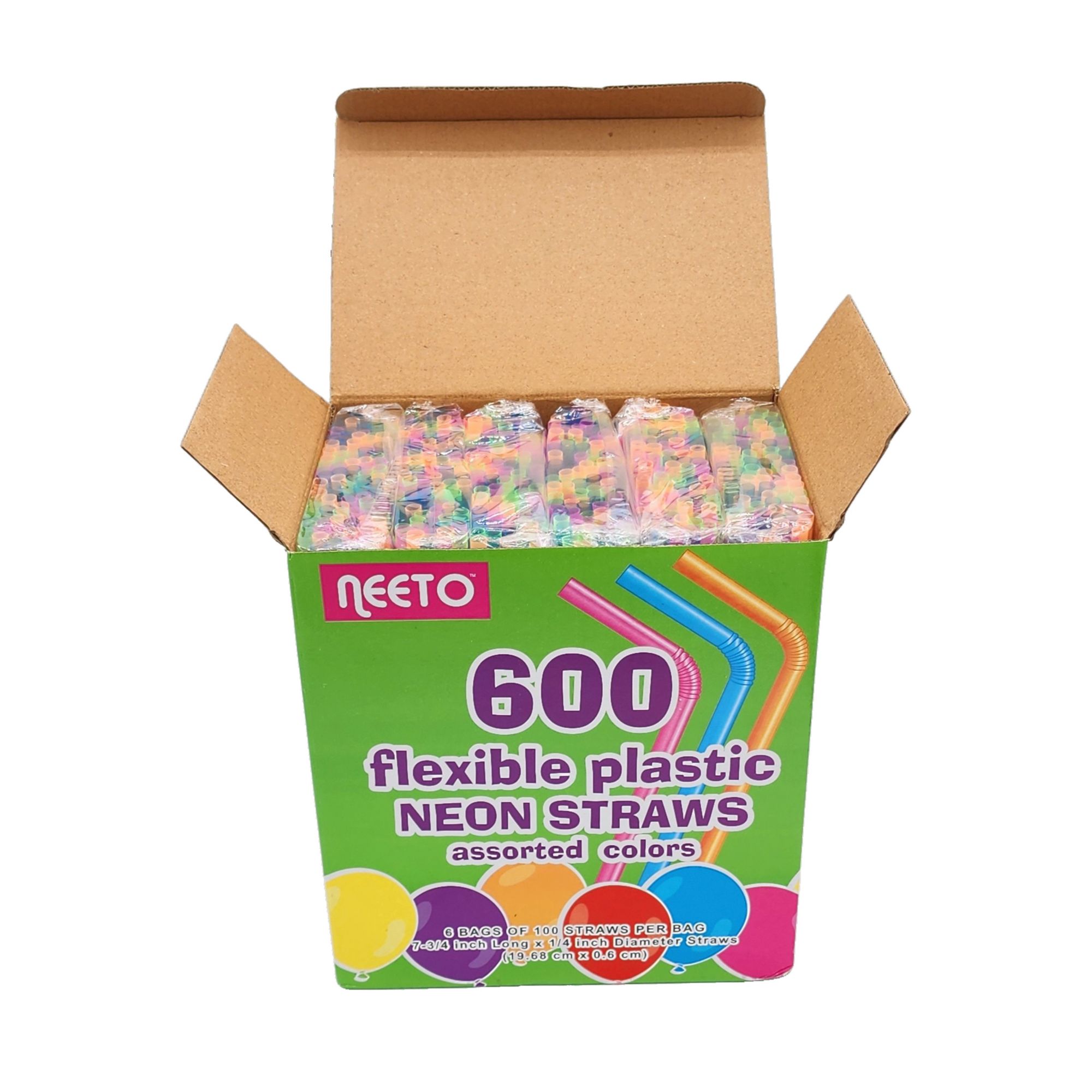 Add color to your parties with Neeto plastic straws. With 600 straws, you'll have a hard time running out.