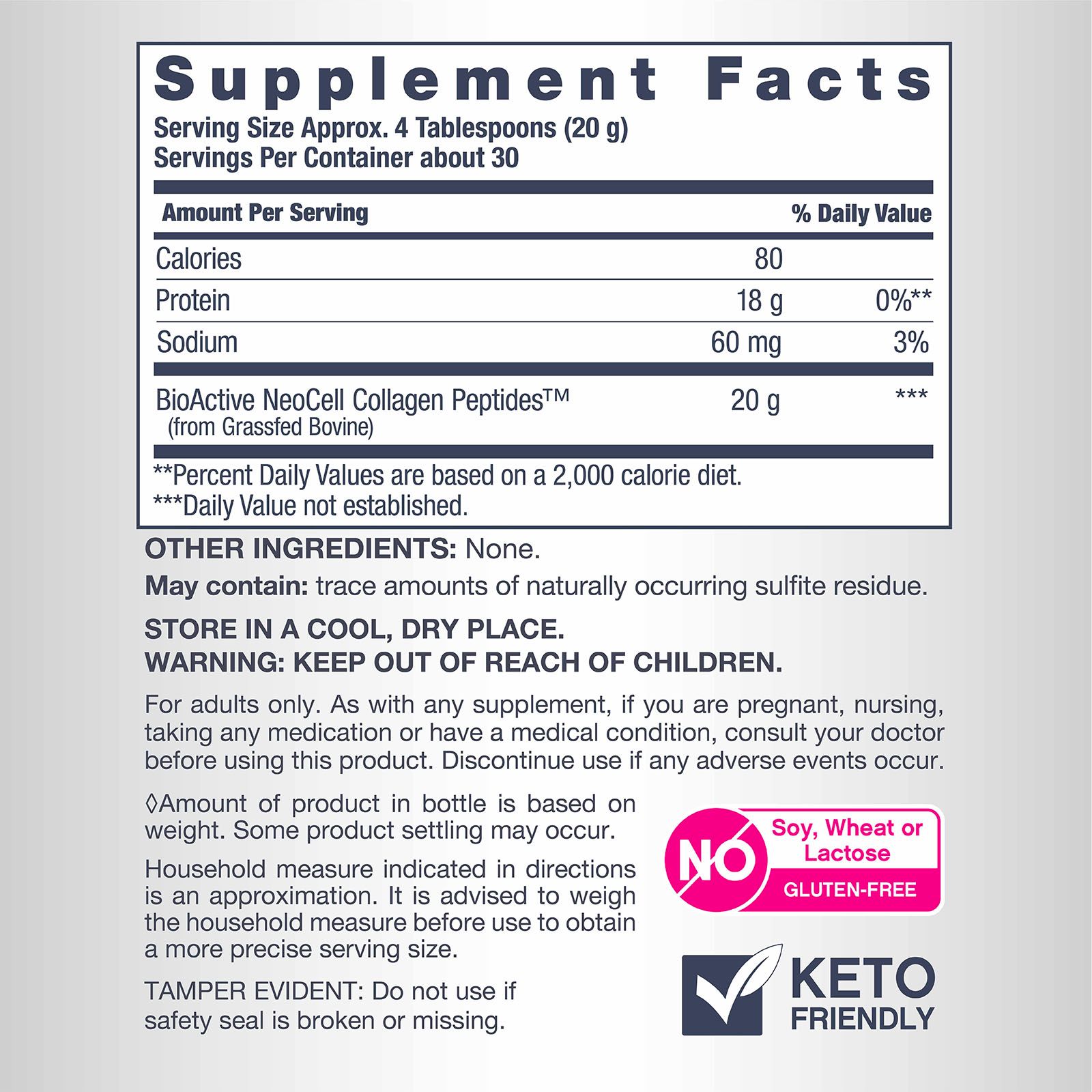 20 grams of BioActive NeoCell Collagen Peptides per serving