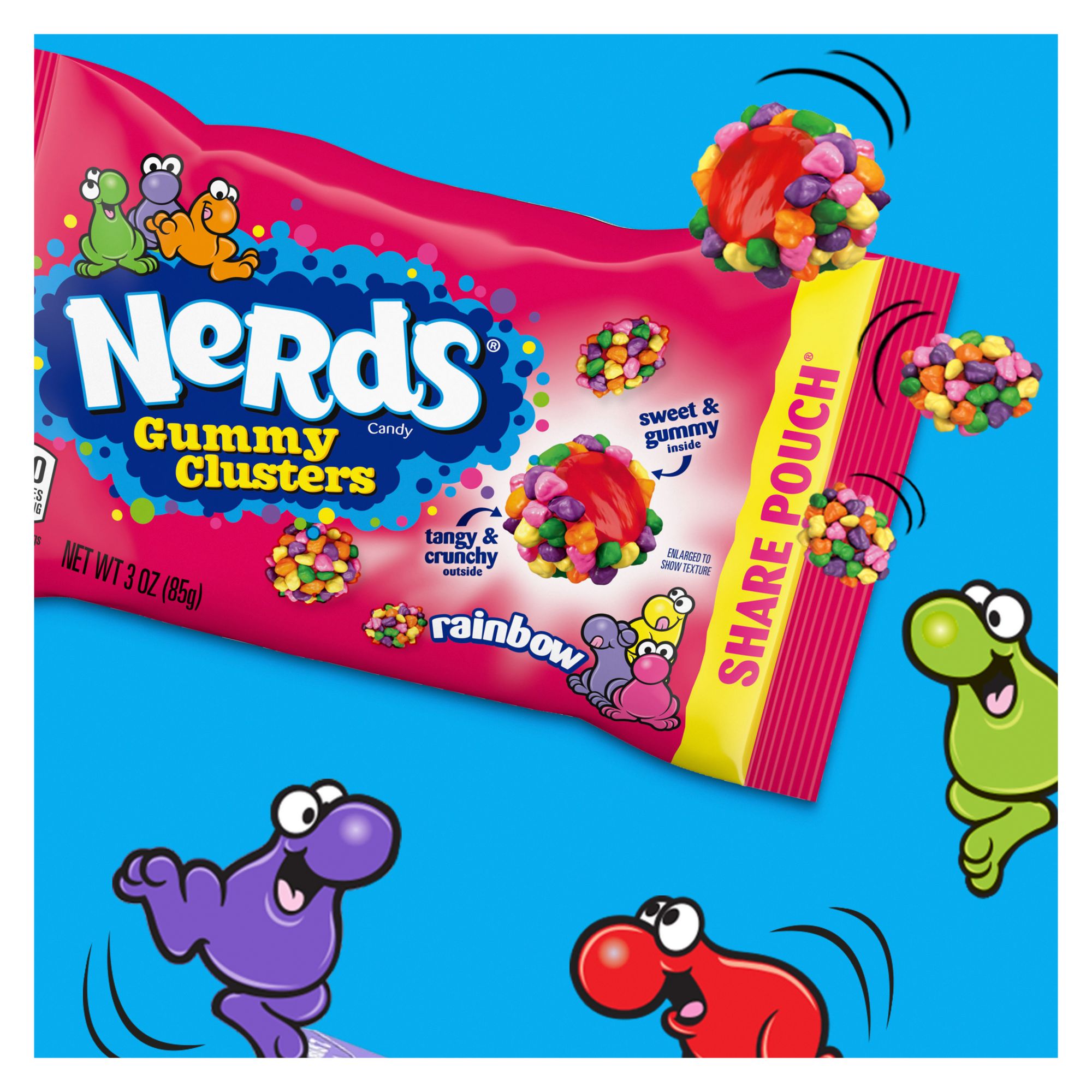 Nerds clusters are known for their tangy, crunchy outside and their soft and gummy inside