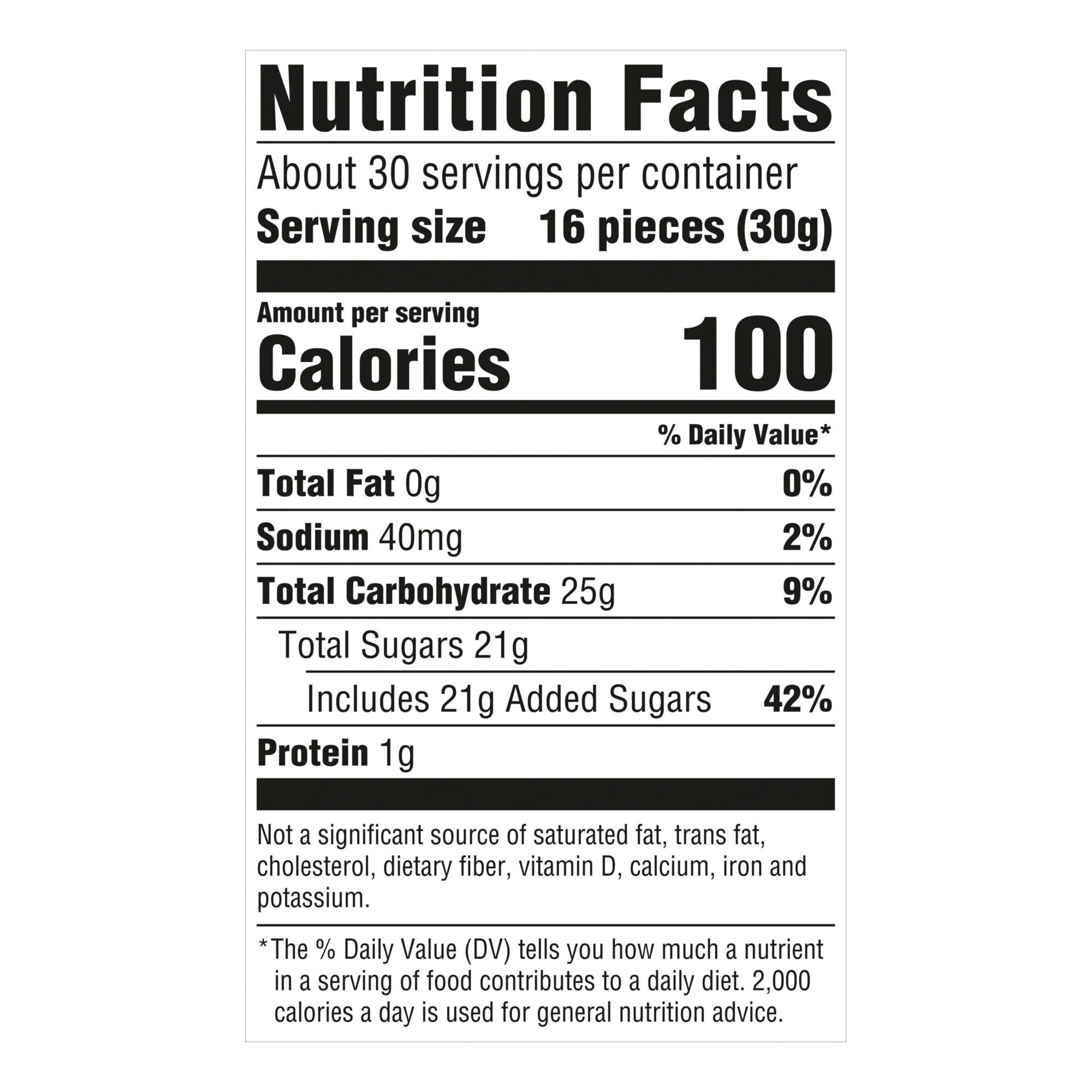 Ingredients Corn Syrup Sugar, Dextrose, Gelatin, Modified Corn Starch, 2% Or Less Of Malic Acid, Citric Acid, Sodium Citrate, Natural And Artificial Flavors, Apple Juice Concentrate, Acacia (Gum Arabic), Carnauba Wax Carmine Color, Color Added Blue 1, Blue 1 Lake, Blue 2 Lake, Red 40, Red 40 Lake, Yellow 5, Yellow 5 Lake Yellow 6.