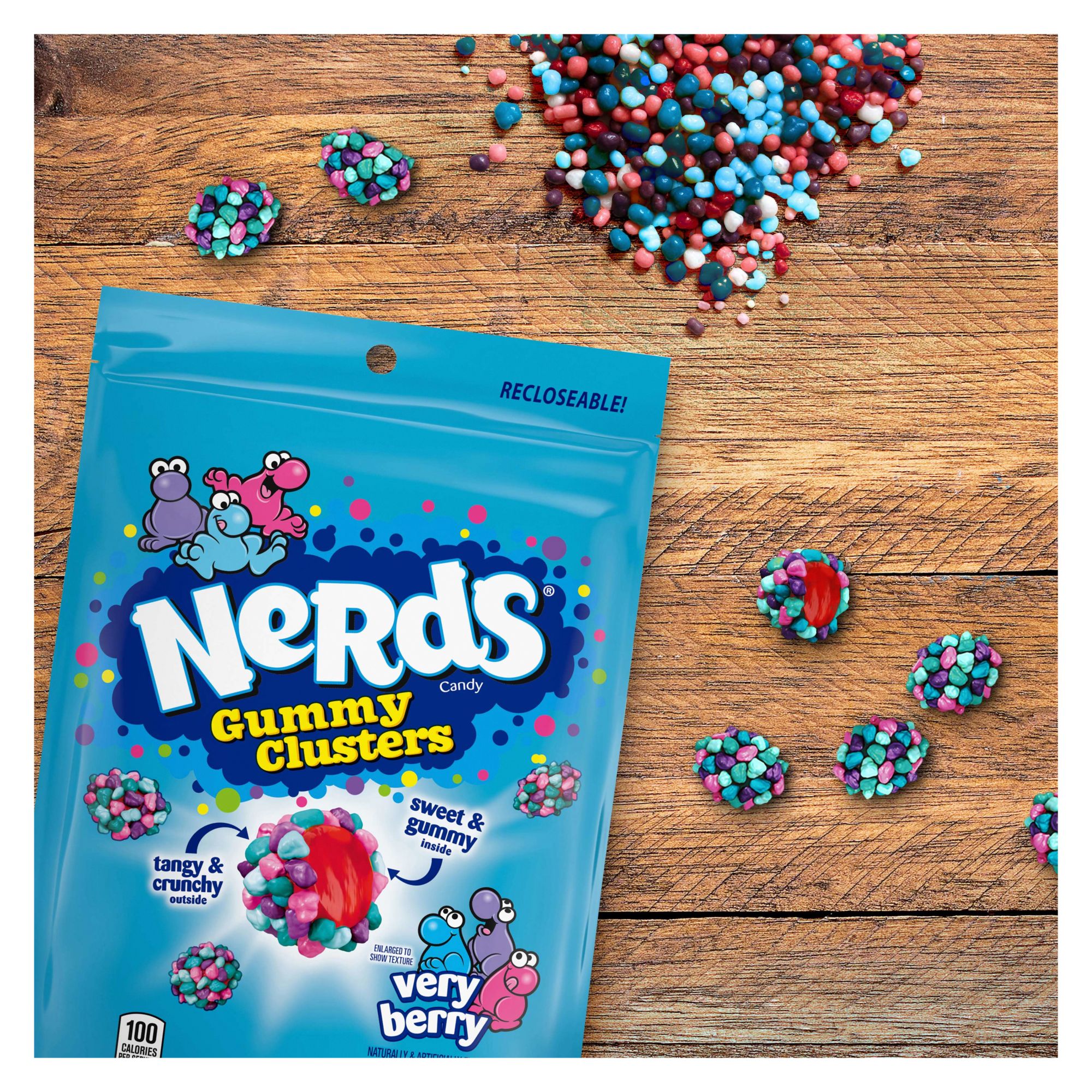 Crunchy, chewy and sweet flavors of Nerds with a gummy center
