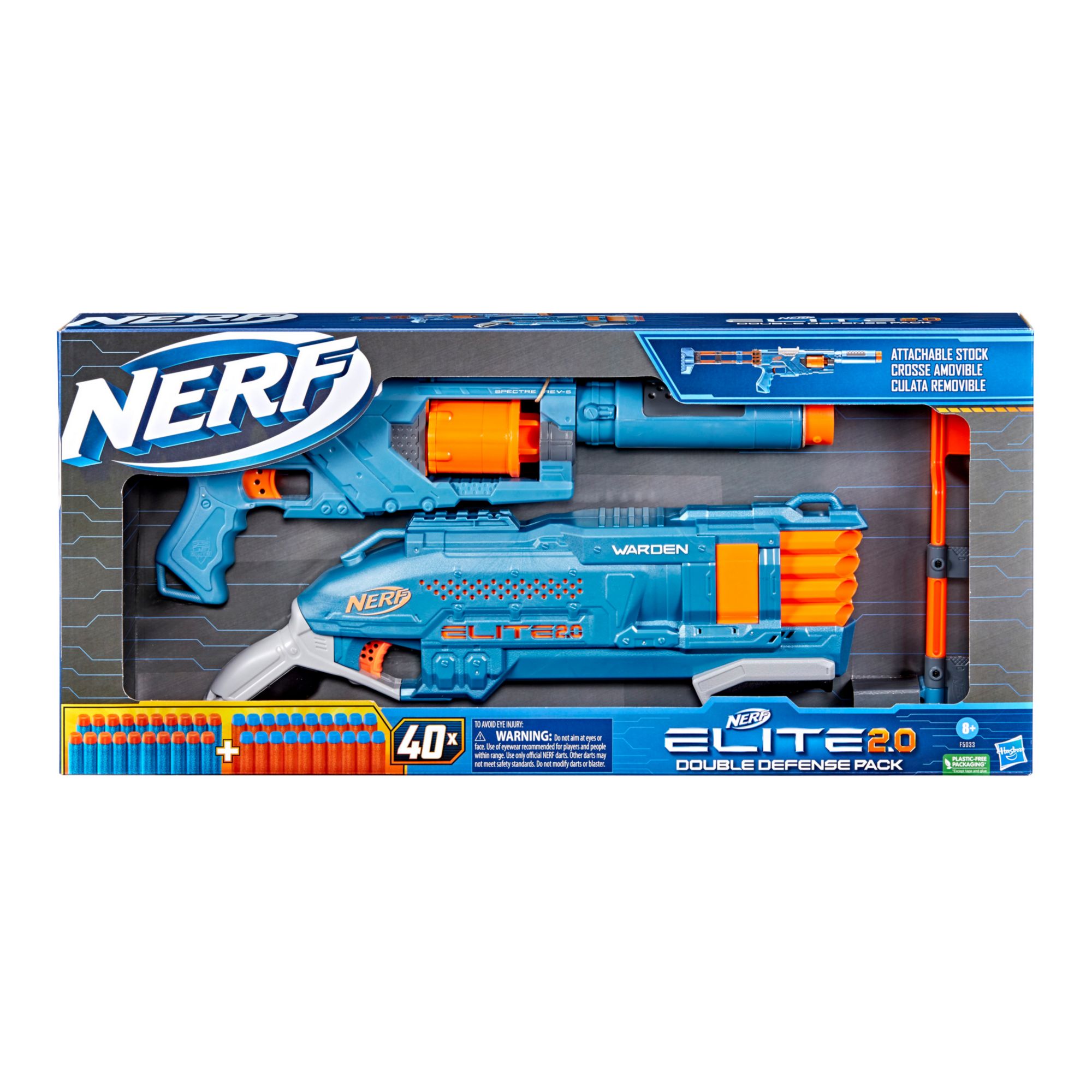 Nerf Elite 2.0 Double Defense Pack: This two-blaster pack is a great way to start or build your Nerf collection. It's a perfect gift set. And with two blasters, the battle can begin right out of the box