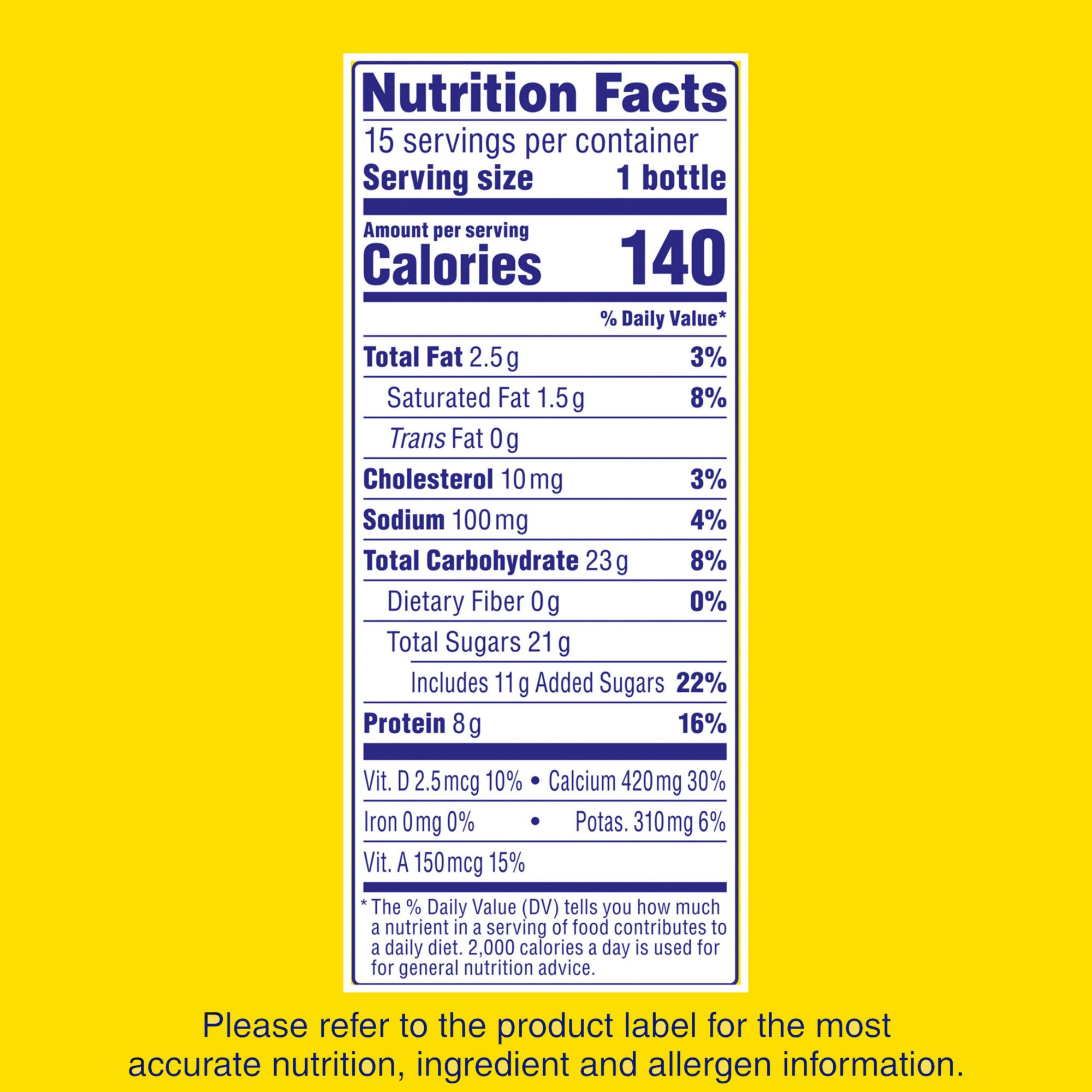 Nesquik Strawberry Flavored Lowfat Milk offers 100% real milk for a classic, delicious taste in an irresistibly tasty and nutritious drink. This lowfat strawberry milk contains no high fructose corn syrup, for delicious goodness that will deliver on the classic taste you love. Nesquik Strawberry Flavored Lowfat Milk is ready to drink, so it's easy to serve with meals, or as a delicious treat on its own. This Nesquik strawberry flavored lowfat milk comes in convenient resealable bottles, easy to take on the go. Containing 8 grams of protein per bottle from 100% real milk and Vitamin A and Vitamin D, this Nesquik strawberry low fat milk also offers 30% more calcium than regular chocolate lowfat milk. Shake well before enjoying, and keep refrigerated after opening.