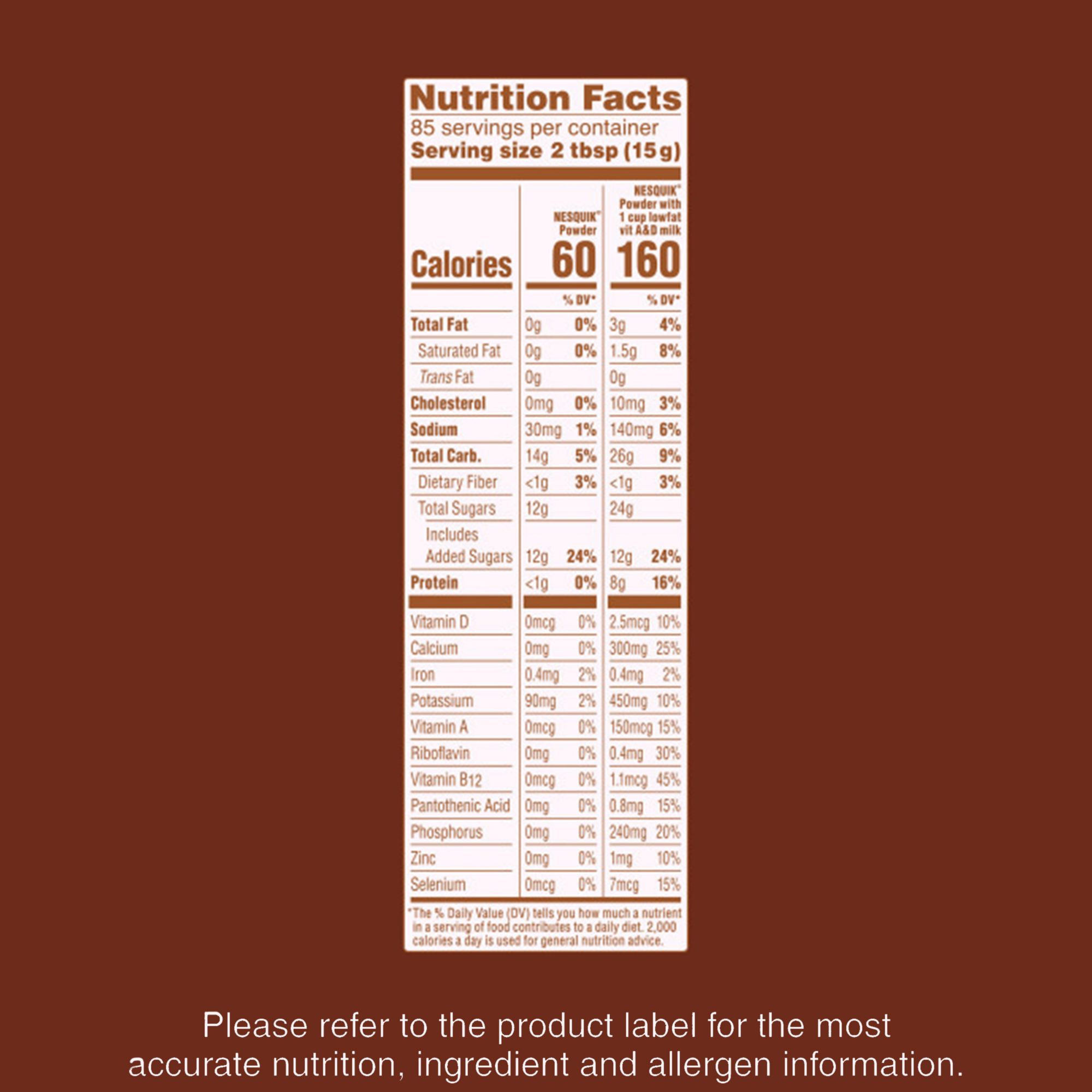 Add 2 Tbsp of Nesquik Powder to 8 fl. oz. of milk for a delicious way to enjoy