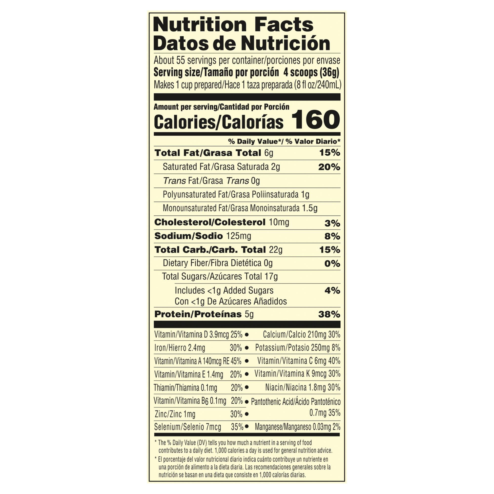 - With less than 1g of added sugar per serving, it contains 13 essential vitamins and minerals that help support healthy growth and development