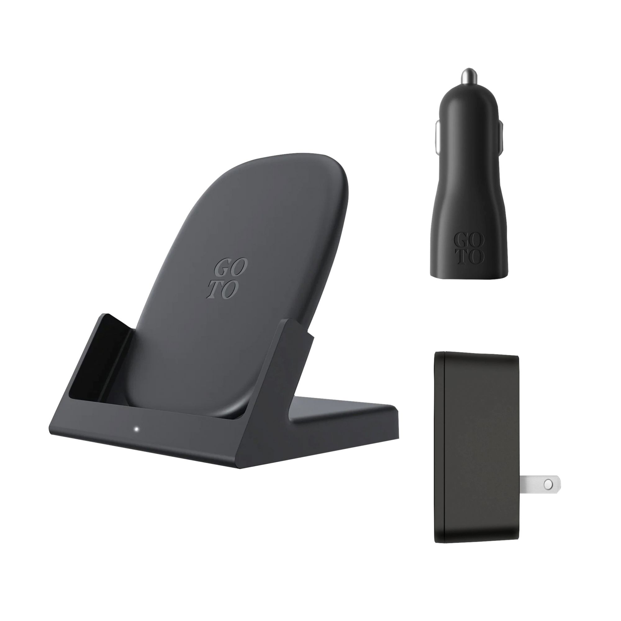 Sit back, relax and recharge. The 10W wireless charging stand lets you view content hands-free so you never have to hit pause. Power up with the GoTo dual-port USB-A wall charger. With two ports for charging, a compact design, and foldable prongs, all you need is an outlet and you're good to go. Charge on the road with the GoTo dual-port USB-A and USB-C car charger. With two ports for charging, you'll never have to run on empty.