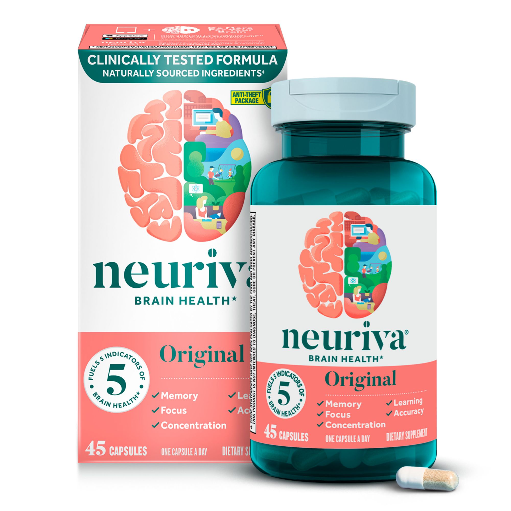 Includes brain performance supplement capsules, 45 ct.