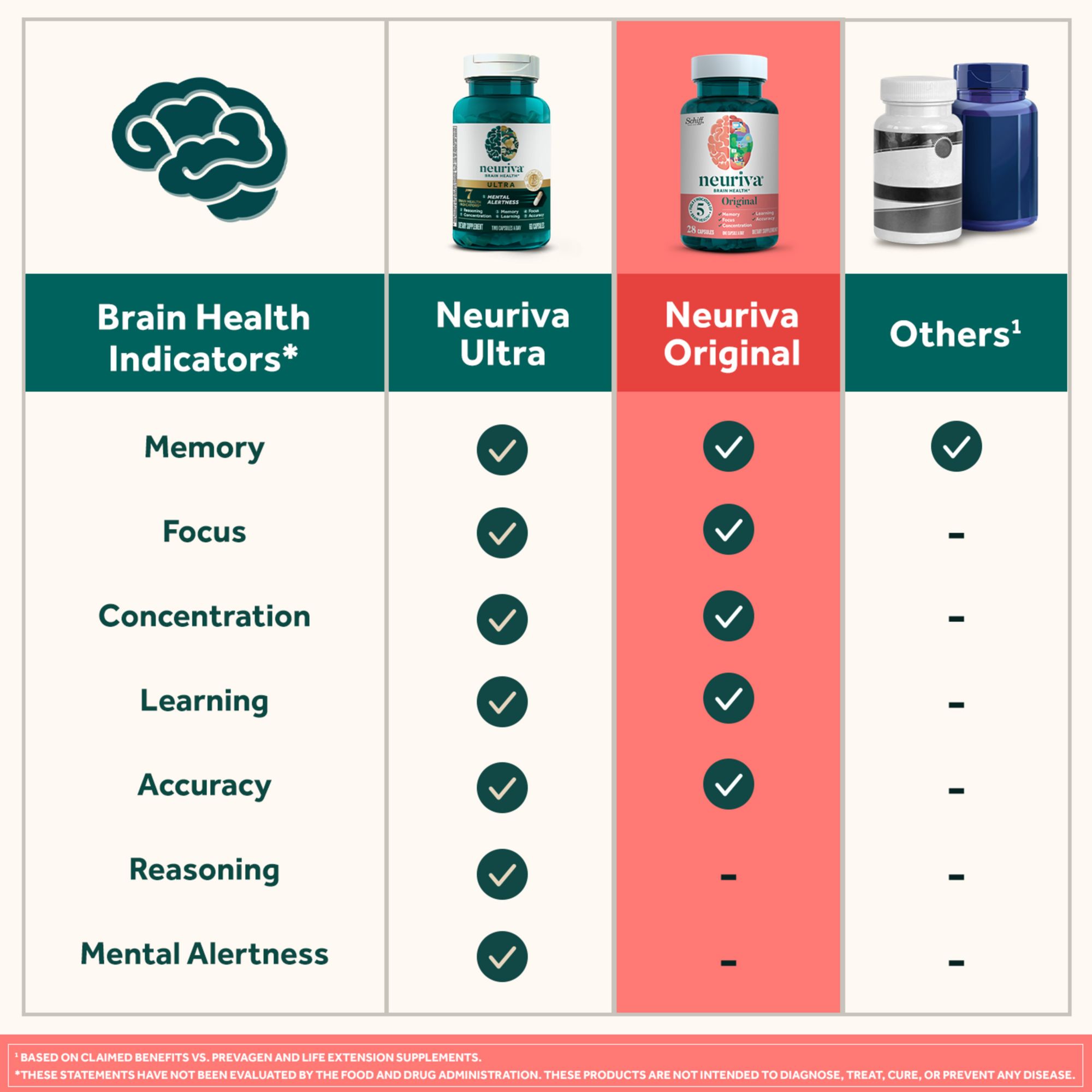 The ingredients of Neuriva support 5 different indicators of brain performance: focus, memory, learning, accuracy and concentration*