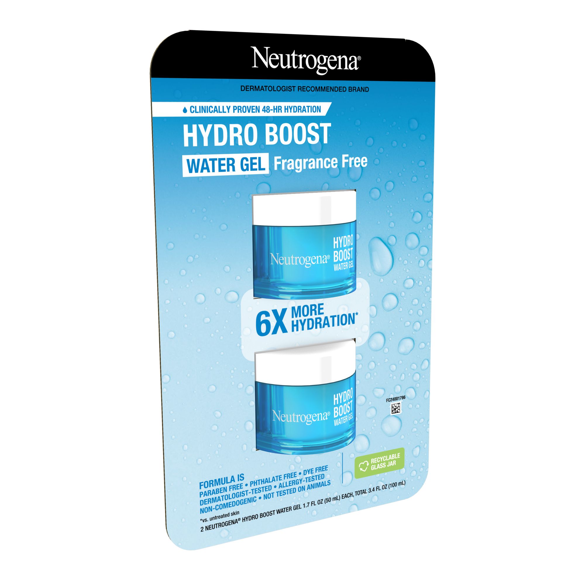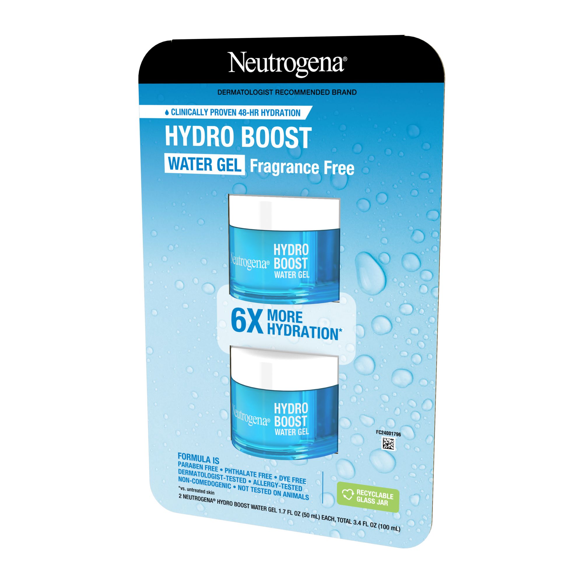Neutrogena Hydro Boost Water Gel Face Moisturizer with hyaluronic acid delivers a refreshing burst of hydration to reveal glowing skin. Ideal for dry, sensitive, and acne-prone skin, this facial moisturizer from a dermatologist-recommended skin care brand instantly delivers 6x more hydration compared to untreated skin. The face moisturizer is formulated with hyaluronic acid, a dermatologist-recommended hydrator that binds to water and holds it within skin's surface, plus Natural Moisturizing Factors, including amino acids and electrolytes to help attract water and restore skin's moisture balance. The water gel is clinically proven to hydrate skin for 48 hours, leave skin looking healthier after two weeks and more radiant after four weeks. The gentle formula of the daily moisturizer is free of fragrance, dyes, parabens, phthalates and non-comedogenic, so it won't clog pores. To use as part of your daily skin care routine, apply the hydrating gel to face and neck daily after cleansing.