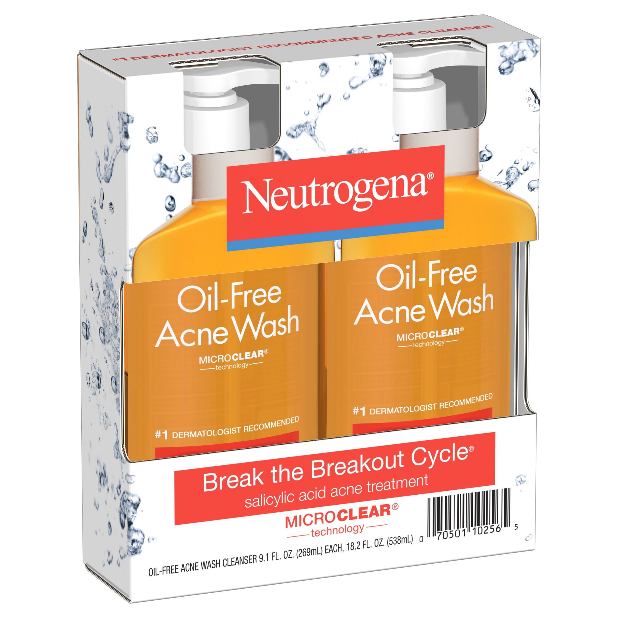 Cleanses skin and helps prevent breakouts With conditioners and salicylic acid acne medicine Micro-Clear technology helps boost delivery of acne medicine Unclogs pores Helps treat acne even before it emerges Oil-free formula #1 dermatologist recommended acne brand For daily use on acne-prone skin Includes 2 pk./9.1-ounce pump bottles of face wash