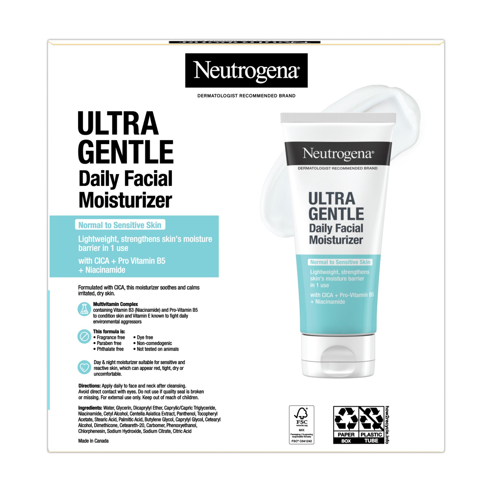 Neutrogena Daily Facial Moisturizer with a multivitamin complex to condition skin and to help support skin's dynamic barrier without clogging pores. Ideal for sensitive and reactive skin that can appear red, tight, dry, or uncomfortable, this face moisturizer from a dermatologist-recommended skin care brand conditions skin and helps fight daily environmental aggressors. The daily moisturizer contains a multivitamin complex with Vitamin B3, also known as niacinamide, and Pro-Vitamin B5 to condition skin and Vitamin E, known to fight daily environmental aggressors. Not tested on animals, the sensitive skin moisturizer is free of fragrance, dyes, parabens and phthalates and its gentle formula won't clog your pores. To use as part of your daily skin care routine, apply the facial moisturizer evenly to face and neck after cleansing.