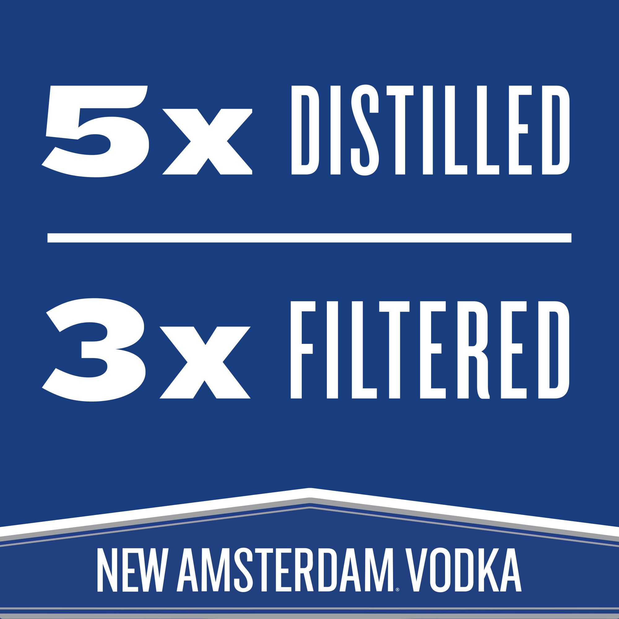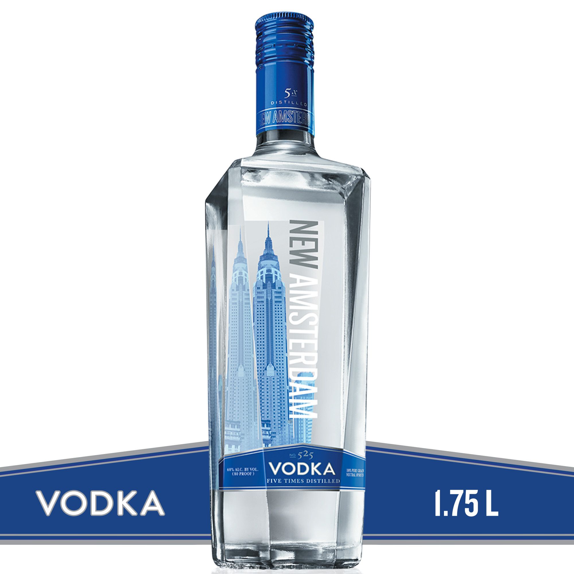 Find Your Wins. New Amsterdam Vodka was born from an uncompromising passion for great vodka. From the water used to the grains selected to the unique, 5x distillation process, a determined spirit flows through everything the brand does. This commitment to excellence delivers a great-tasting vodka with a crisp, clean finish and unparalleled smoothness. New Amsterdam can be enjoyed straight and chilled or paired with club soda and lime, orange juice, or cranberry juice. It also makes an easy yet delicious base for Moscow Mules, Bloody Marys and Cosmopolitans. If you're making mixed drinks, which typically call for 2 ounces of liquor each, you'll get 30 servings out of this recyclable glass bottle. Each 1.75 L bottle has 40% alcohol by volume and is a wonderful compliment for watch parties or gatherings with friends, providing ample supply for everyone to enjoy. Whether you're a vodka enthusiast or just looking for a high-quality spirit to add to your bar collection, New Amsterdam Vodka is sure to impress with its exceptional flavor and smooth finish.