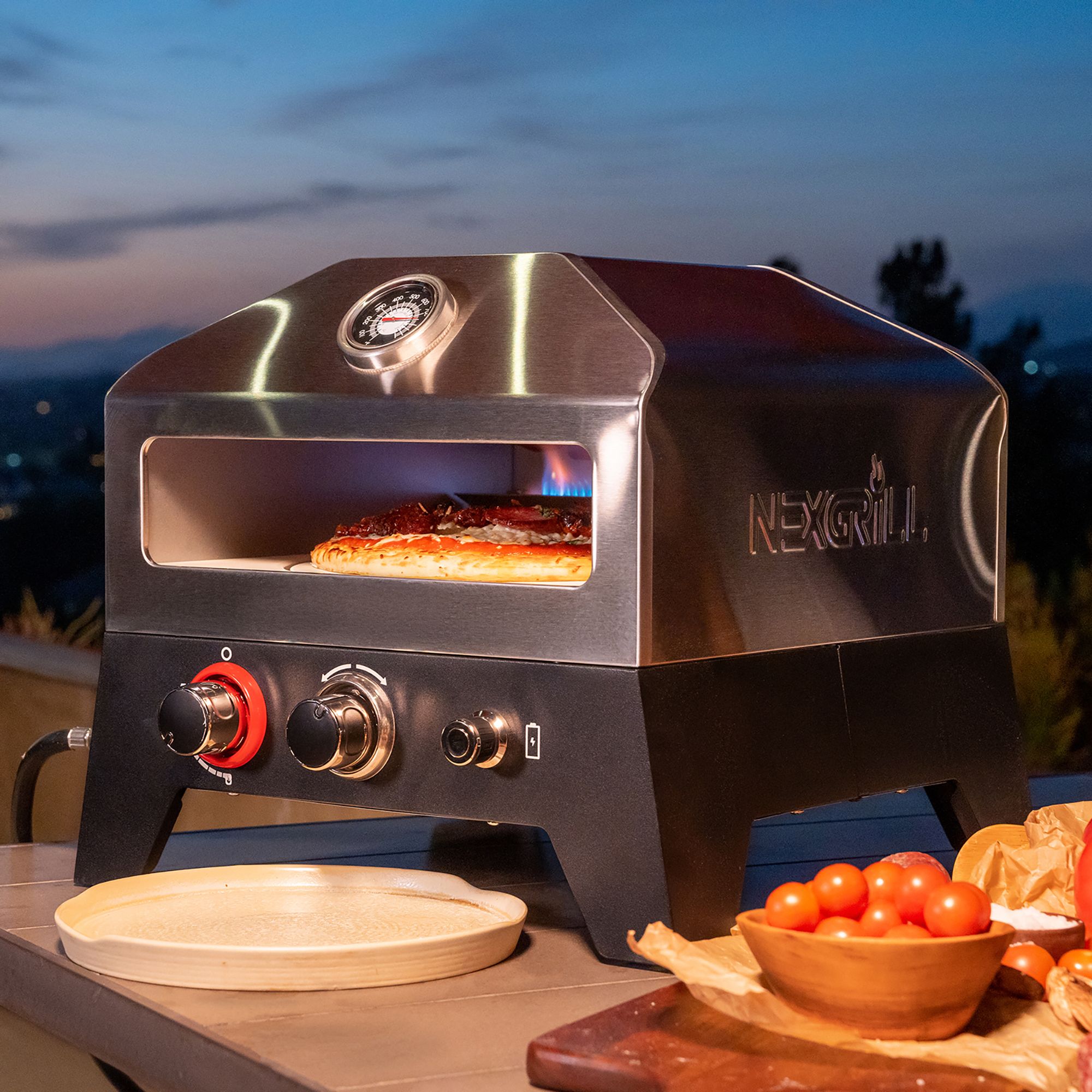 The Nexgrill Pizza Oven includes a 12" manual rotating pizza stone function for a perfect cook on all sides without the need of a spatula to turn the pizza. If you are looking to add flavors to your pizza, the pizza oven includes a large easy-fill smoke infuser box to be used with either wood chip or pellets with a heat-resistant handle. The temperature gauge is available to monitor the pizza that can be cooked in only 5 minutes. The top construction is made of stainless steel to retain heat for a perfect cook. Cover is included to make sure to keep your pizza oven from the outdoor elements. A pizza kit is also included with your purchase.